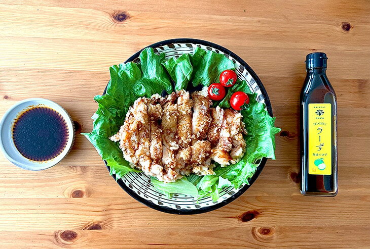 九州の小京都日田で創業から百七十年。天皇献上の栄誉を賜った、高級醤油醸造元 日田醤油の職人達がこだわりぬいたたれ。 秘伝の醤油に国産のラー油と絞りゆずを合わせた新感覚醤油だれ。 肉、魚、野菜、中華、揚げ物に混ぜるだけ、かけるだけのかんたん万能甘辛だれ。ピリッと本格的なおいしさが効く、一度食べたらクセになる絶品調味料です。 九州日田お取り寄せグルメ。 内容量:300ml 原材料:濃口醤油(国内製造)、みりん、上白糖、柚子果汁、ラー油/調味料(アミノ酸等)、カラメル色素、甘味料(ステビア)、増粘多糖類(キサンタンガム)、保存料(パラオキシ安息香酸)(原材料の一部に大豆、小麦含む) 製造より約10ヶ月程度。 開封後は、冷蔵庫で保存してお早めにお召し上がり下さい。 ヤマト運輸・佐川急便・ゆうパック※お選び頂けません。 商品と同梱可能です。揚げ物等に相性バツグンのゆず香る甘辛たれ。 もちろん、このたれを手がけたのは、 九州の小京都日田で百七十年の歴史を誇り、 数え切れない熱烈なファンに支持される老舗、日田醤油。 日田醤油自慢の醤油を使った新たな調味料が誕生しました。 今度はあなたの舌が、その真髄を味わう番です。 天皇献上の栄誉を賜る、創業百七十年の老舗「日田醤油」 このたれを手がけたのは、 天皇献上の栄誉を賜った高級味噌醤油醸造元日田醤油。その歴史は古く、文久二年、天領日田の城下町に中山永太郎が、麹屋として甘酒・味噌醤油の醸造を開始したところから始まります。その後百七十年の長きにわたり「自然の素材を自然に扱う」というモットーに従い時代の波に流されることなく、昔ながらの製法により伝統を守り続けています。楽天市場でも、ランキング味噌部門、醤油部門、だし部門を独占していることからも今話題の蔵といっても過言ではないでしょう。 この職人の伝統の「技」こそがこのたれの味わいを生むのです。