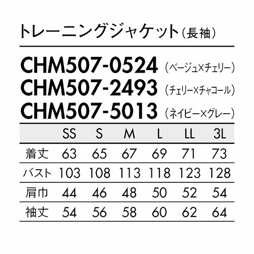 同一シリーズCHM511-5050、CHM511-5024、CHM511-5045 トレーニングジャケット(兼用)CHM607-9324、CHM607-5013 トレーニングパンツ(兼用)CHM609-5001 ハーフパンツ(兼用)CHM611-5001 トレーニングパンツ(兼用)|商品名|トレーニングジャケット(兼用)|メーカー|アシックス|品番|CHM507-2493、CHM507-5013、CHM507-0524|カラー|チェリー×チャコール、ネイビー×グレー、ベージュ×チェリー|サイズ|SS、S、M、L、LL、3L|商品説明|襟裏配色:ファスナーを開くと見える配色でおしゃれに。アシンメトリーなデザイン:スポーティーな印象のアシンメトリーな配色。腕の上げ下げスムーズ:プロフィットテクノロジーを取り入れ、スムーズな肩や腕の動きを追求。リブ仕様の裾:裾はリブ仕様で腰まわりにフィット。シームポケット:デザインを引き立てる、すっきりシームポケット。|素材|ダブルフェイス:ポリエステル80% 綿20%|機能|制菌、吸汗|ブランド|アシックス(asics)|サイズ区分|ユニセックス 男女兼用 ペアユニフォーム|シリーズ|アシックスジャージ|備考|アシックスメディカル&ケアユニフォームは2025年12月末を持ちまして販売終了とさせていただきます。※ナースシューズの販売は継続となります。|ダブルフェイス|深みのある表情の杢調素材。コットンの風合いも感じられる綿混で、ストレッチ性と吸汗速乾性にも優れた着心地の良い素材です。|よく使われるシーン|病院、クリニック、病棟、医院、外科、内科、耳鼻科、眼科、整形外科、形成外科、歯科、審美歯科、エステサロン、脱毛サロン、健康診断、カイロ、整体、接骨院、マッサージ、研修医、手術、オペ、医学部、看護、実習|メインカテゴリ|医療用ユニフォーム>介護・ケアウェア>ジャージ・トレーニングウェア>ユニセックス(男女兼用)|配送方法|通常:宅配便(メール便不可商品)◆北海道・沖縄県への配送はお受けしておりません。ご注文確認後にご連絡の上キャンセルいたします。当店及びメーカーで欠品の場合でもご購入でいる場合がございます。欠品時の納期はメールでご連絡します。注文確認メールが届かない場合はお電話にてお知らせ致しますので届かない旨を必ずご一報下さい。◆全ての商品に返品交換の可否を記載しております。交換時に発生する諸費用はお客様のご負担となります。詳しくはご利用ガイドをご覧ください。 → ご利用ガイドへアシックスのジャケット ジャージー。制菌・吸汗加工を付与、スタンドカラーとすっきり細身のシルエットでスタイリッシュに。下衣は【CHM607】シリーズ住商モンブランは、医療・介護の現場で働く人のために、快適な着心地とスタイリッシュなデザインを両立。チームでコーディネートできる豊富なカラー展開も魅力です。スポーツメーカーのアシックスならではのスポーツ工学研究所から生まれた技術・ノウハウを医療の現場に活かし、快適性と動きやすさを追求した商品が魅力です。また、鮮やかな花柄で上品さと華やかさが魅力のローラアシュレイやアイドルグループの衣装を手掛けるオサレカンパニーとのコラボ商品、世界的デザイナーのコシノジュンコがデザインした究極の「機能美」を追求したドクターコートなど医療現場を華やかにしてくれる商品が満載です。注意こちらの商品は交換・返品不可となります。※初期不良以外のご購入者様都合の交換・返品ができません。この商品はお取り寄せになりますこちらの商品は、ご注文確認後メーカーより取り寄せとなります。他のサイトでも同時販売しておりますので、在庫更新のタイミングにより商品をご用意できない場合がございます。メーカー在庫が欠品の場合もございますので予めご了承ください。別途、メールにてご案内させていただきます。シーズン品につきましては、在庫変動が激しいため欠品の可能性がございます。お急ぎの場合は、お手数ですがご購入前に在庫のご確認をお願いいたします。