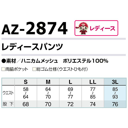 アイトス AZ-2874 レディースパンツ AITOZ ジャージ カジュアルウェア パンツ ズボン レディース 女性用 作業着 作業服 制服 ユニフォーム