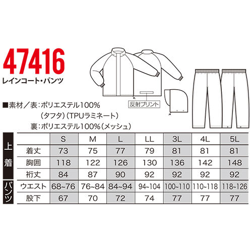 合羽 上下セット クロダルマ レインコートパンツ 47416 レインウエア 合羽 カッパ TPUラミネート