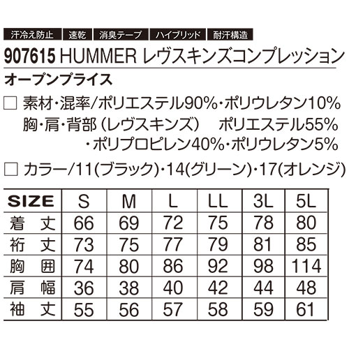 同一シリーズ907715 HUMMERアンダーパンツ906915 HUMMER ワッフルインナー015-15 ハマー グランヒートコンプレッション|商品名|HUMMERコンプレション|メーカー|HUMMER|品番|907615|カラー|11_ブラック、14_グリーン、17_オレンジ|サイズ|S、M、L、LL、3L、5L|素材|ポリエスル90%、ポリウレタン10%胸・肩・背部(レヴスキンズ):ポリエスル55%、ポリプロピレン40%、ポリウレタン5%|機能|保温、汗冷え防止、消臭テープ、ストレッチ、裏起毛、抗菌|ブランド|HUMMER|仕様|吸汗速乾と保温に優れた裏PP生地レヴスキンズ、滑らかで優しいタッチ、ハイテンション裏起毛保温生地|商品説明|重ね着でバタつく肌を解放する保温インナー・汗を逃し爽やかな肌心地をキープ・人体工学に基づいて発汗量の多い箇所にポリプロピレン素材をマッチング・体表面の汗をすばやく吸い上げ生地裏に拡散蒸発し保温効果で体温を逃さない・あたたかく衣服内をドライに保つHUMMERの保温インナー|サイズ区分|メンズ|年間区分|秋冬通年|シリーズ|HUMMER 防寒インナー|商品おすすめ特徴一覧|防寒インナーは筋肉の疲労軽減やケガ防止、寒さ対策や風邪予防をすることができます。伸縮性があり動きやすく作業効率があがる、生地が伸びる、しゃがむことが多い現場に最適です。適度な締め付けにより疲労の元になる無駄な筋肉の揺れを防ぎ、スタミナの向上や疲労感の軽減など、さまざまな面で体をサポートしてくれます。伸縮性があれば、体の動きを邪魔せず、さらに肌に柔らかくフィットするため、長袖を着ているという違和感を感じずに活動できます。また素材により、通気性は優れており、ムレることなく、快適に活動できます。さらに、汗を外に逃がすことで体温調節もサポートします。また作業現場はもちろん、アウトドア活動、スポーツ、通勤、通学など、多様なシーンでも活躍します!|おすすめの職種例|鳶 とび 鳶職 軽作業 屋内作業 屋外 建設 倉庫 安全 土木 輸送 運輸 運送 開発 建築 施工 製造業 建設業 土木業 生産 測量 ドライバー 運転者 現場 倉庫業 警備 交通整理 清掃業 清掃 組み立て 組立 現場監督 施工監理 現場監理 配達 配送業 紡績 家具製造 整備士 自動車整備 軽天 軽鉄 表装 型枠 木工 ガラス 大工 足場 内装業 塗装 その他の関連作業|おすすめシーン|釣り つり スポーツ観戦 スポーツ アウトドア キャンプ ソロキャン ランニング ウォーキング 徒歩 ジョギング ビジネス トレーニング ジムウェア 事務所作業 バイク ゴルフ スキー ウィンタースポーツ 登山 卓球 スノボー スキー 野球 サッカー ホッケー バスケットボール バスケ フィットネス ダイエット テニス |メインカテゴリ|作業・防災用品専門店>作業着・作業服>インナー・小物類>冬用インナー>冬用長袖シャツ|配送方法|通常:宅配便(メール便対応商品)◆送料込みの表示がある商品でも、北海道・沖縄県は別途送料2,835円を頂戴します。当店及びメーカーで欠品の場合でもご購入でいる場合がございます。欠品時の納期はメールでご連絡します。注文確認メールが届かない場合はお電話にてお知らせ致しますので届かない旨を必ずご一報下さい。◆全ての商品に返品交換の可否を記載しております。交換時に発生する諸費用はお客様のご負担となります。詳しくはご利用ガイドをご覧ください。 → ご利用ガイドへ肌面から瞬時に汗を吸い上げるレヴスキングを発汗量の多い背中に集中して配置した着心地の良い保温インナーHUMMERらしいパワフルでラギッドなアシンメトリーブロッキングデザイン重ね着でバタつく肌を解放する保温インナー・汗を逃し爽やかな肌心地をキープ・人体工学に基づいて発汗量の多い箇所にポリプロピレン素材をマッチング・体表面の汗をすばやく吸い上げ生地裏に拡散蒸発し保温効果で体温を逃さない・あたたかく衣服内をドライに保つHUMMERの保温インナーコスパ二重◎の推しカーゴ☆昨年度売上1位☆人気ジャケット使い勝手のいいストレッチデニムフード付きで簡単な雨風対策ずれ落ち防止やファッションとしてポケットが多い!小物も入れやすい冬場の必須アイテム昨年人気1位熱を蓄える!☆野外で大活躍☆注意こちらの商品は交換・返品不可となります。※初期不良以外のご購入者様都合の交換・返品ができません。この商品はお取り寄せになりますこちらの商品は、ご注文確認後メーカーより取り寄せとなります。他のサイトでも同時販売しておりますので、在庫更新のタイミングにより商品をご用意できない場合がございます。メーカー在庫が欠品の場合もございますので予めご了承ください。別途、メールにてご案内させていただきます。シーズン品につきましては、在庫変動が激しいため欠品の可能性がございます。お急ぎの場合は、お手数ですがご購入前に在庫のご確認をお願いいたします。