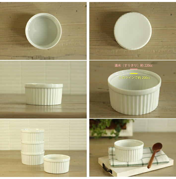 【白磁のココット 220cc】 (9cm) / ミニグラタン スフレ 耐熱 オーブン対応 かわいい カップ デザート 容器 陶器 陶磁器