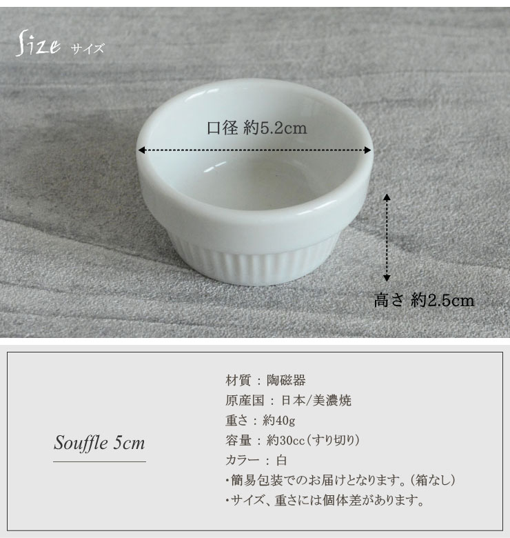 【Souffle スフレ】5cm / 30cc (ココット ミニグラタン 耐熱 オーブン料理 カップ デザート 容器 陶器 陶磁器