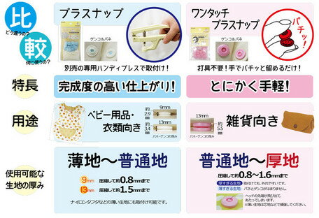 【商品説明】 糸と針を使わずに取り付けでき、肌にやさしく、さびない「プラスナップ」です。 ゲンコとバネはオフホワイトです。 ■素材・成分:ポリアセタール プラスナップは… ・プラスチックだから、軽くて錆びない! ・金属アレルギーの方にもやさしい。 ・軽い力で開閉できます。 ・取付けが簡単です。 針や糸がなくても簡単に取り付け可能で、製品のようにきれいな仕上がりです。 ベビー服、キッズのお洋服はもちろん、介護ウエア、レインコートやアウトドア用品、寝具など、幅広い用途に使えます。 バスタオルに取り付ければ、ラップタオルの出来上がり。 ダブルガーゼの生地やハンカチに取り付ければ、かんたんスタイが完成! お名前タグ作りにも活用できます。 ※取付には、別売りのハンディプレスもしくは卓上プレスが必要となります。