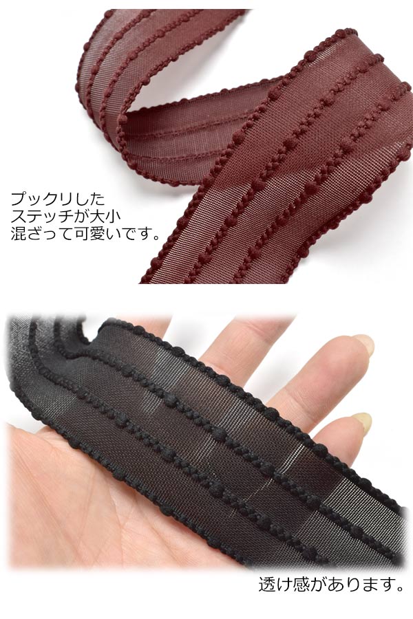 まんま母さんのりぼんでは、人気のファブリックリボンを1m単位でお好みの長さにカットして販売しています。 両端のポップコーンステッチのため、幅が約40〜42mmほどです。 4本ラインのステッチのポコポコがポップコーンのよう! 可愛いリボンです。少し透け感があって柔らかめです。 大人も子供用にも使いやすいカラーを揃えました。 組合せによって作品の幅が広がりますね! 約40mm幅のリボン、1mのお値段です。 オーダーカット(計り売り)販売です。 ・ご注文は1mから承ります。 数量2で2mになります。10mの場合は数量10です。 リボンはつながった状態でお送りします。 商用利用可能 ご注意事項 ・1ロール約18m巻きです。最大約18mつながった状態でお届けできます。 ・海外商品のため加工具合により幅・色合いのバラつきがでる場合がございます。 ・入荷時期により価格の変動がございます。予めご了承ください。 ・各カラー在庫の状況によって2つに分かれる場合があります。予めご了承ください。 リボンを使ってヘアゴムやヘアクリップ、カチューシャ作りにオススメ。 ヘアアクセサリー以外にもコサージュやキーホルダー、バックチャーム、ラッピングなど使い方は様々! オリジナルキッズアクセサリーから大人まで使える幅広いリボンです! お友達とお揃いで作ったり、プレゼントにも良いですよ。 発表会用やイベント用のリボン、バザーなどでも大人気です。 ハンドメイド作品に! ベビー・キッズ・親子ペアでハンドメイドを楽しんでくださいね。