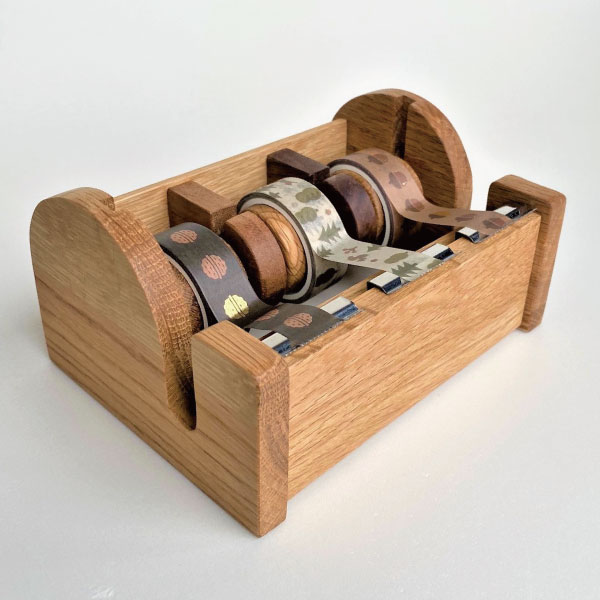 北欧風 マスキングテープカッター 木製 おしゃれ 3連タイプ 無垢 テープスタンド 小さいテープ/ホルダー ディスペンサー クラフト ミニテープカッター 台 ナチュラルウッド