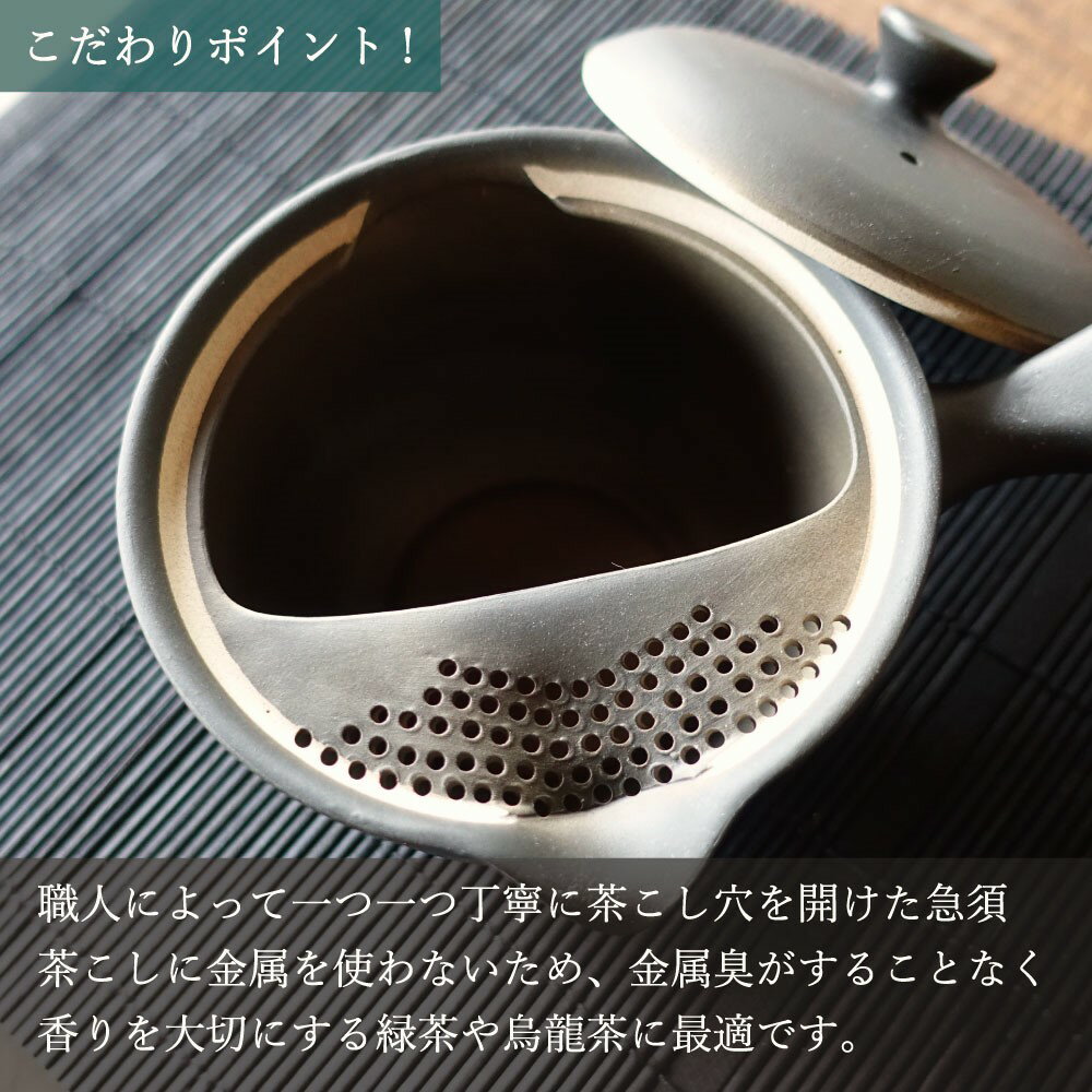 こだわり 急須 おしゃれ 常滑焼 お茶が美味しくなる 七十七急須 ティーポット 日本製 きゅうす 丸い 洗いやすい 茶こし付き 茶器 ギフト 贈り物 プレゼント とこなめ 黒 焼締 おすすめ 人気 カフェポット 77穴