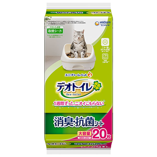 商品情報商品名デオトイレ 複数ねこ用消臭・抗菌シート 16枚特長●1枚で2頭でも約1週間交換不要の猫用システムトイレ取替シートです。●1枚で2頭分のオシッコを強力に消臭するので、閉めきったお部屋でもニオいません。●猫専用の消臭マイクロカプセルを配合しました。●シートの吸収面が白いので、オシッコの色がわかりやすく、健康状態をチェックすることができます。サイズ(約)幅43×奥行き29cm原産国日本使用方法●本品を引き出しにビニール面を下にして敷いてください。●引き出しを強く押し込むと、シートがズレてモレの原因になりますので、引き出しはゆっくりと丁寧に押し込んでください。●排泄のニオイやシートからのオシッコモレを防ぐために、愛猫2頭の場合、1週間に1回は交換してください。●大量の尿を吸収しシートが重たくなっている場合や、吸収した尿がこぼれる場合がありますので、シートの四隅をそっと持ち、新聞紙の上など汚れてもかまわない所で交換してください。●尿量が多い愛猫の場合、シートから尿がモレる場合がありますので、慣れるまでは数日に1回、引き出しを開けてシートの吸収状態を確認してください。●飼育している愛猫の数、体重や体調、尿量、使用しているトイレの広さ、季節によって変化します。使用期間は目安として早めに交換してください。入荷について弊社では、できるだけ品切れ防止、新しい商品をお客様にお届けするために、定期的に(週1回)仕入れを行っておりますが商品によっては、入荷されず納期未定となる場合あります。その場合、別途メールにて詳細をご相談させていただきます。関連ワードネコトイレ・猫トイレ・猫・トイレ・猫用・猫砂・ねこトイレ・ネコ・ねこ・におわない・デオトイレ・脱臭・ユニ・チャーム・飛び散らない・取り替えサンド・サンド・消臭・抗菌 デオトイレ ペットシーツ 猫 猫 消臭 システムトイレ シート 猫 シート 猫 システムトイレ デオトイレ サンド トイレシート 人 ペット 消臭 デオトイレ 消臭・抗菌シート 大容量 猫 トイレシートデオトイレ 複数ねこ用 消臭・抗菌シート 大容量 16枚 x 3個 ユニチャーム ペット 即日発送 4520699632291 デオトイレ 複数ねこ用 消臭・抗菌シート 16枚 大容量 デオトイレ 猫用 シート 消臭・抗菌シート 大容量タイプ●1週間分の尿をしっかり吸収し、抗菌剤がニオイを強力に抑えます。※愛猫1頭(体重8Kgまで)の場合。ウンチをした場合は早く取り除いてください。●銀イオン配合。ニオイ菌99.9%抑制※第三者機関による消臭●抗菌シートの抗菌性試験結果。すべての菌を抑制するわけではありません。●消臭マイクロカプセル配合で強力消臭●シート表面が白いので、オシッコの色がわかりやすく、チェックしやすい。●シートサイズ約430mm*約290mm 【在庫がある場合】1〜2営業日に発送いたします。1