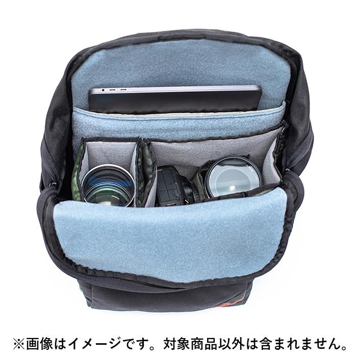 種別:カメラバッグ NOTE2サイズのコンパートメントが同梱され、それぞれ中仕切りが一枚付属します。収納目安は、中型一眼レフ1台、レンズ2-3本程度です。また、コンパートメントの上部には仕切りが備わり、素早く取り出したい機材を収納可能です。コンパートメントはバッグ内部に面ファスナーで固定でき、前面のファスナーを開くとアクセスできます。バッグ底部には衝撃を和らげる取り外し可能なクッションパッドが敷かれ、機材をしっかり保護します。スリーブは17インチノートPCに対応しています。両サイドにはウォーターボトル等を入れられるメッシュポケットと、小型三脚の持ち運びに適した三脚用ストラップとポケットを装備。大きなフロントポケットにはオーガナイザーを備え、小物の収納に最適です。滑りにくいショルダーストラップはスムーズな調節が可能。ほか、クッション性・通気性に優れたバックパネル、チェストストラップが備わり、長時間の移動時にも快適で安定した持ち運びを叶えます。バッグ表面には耐候性のある生地を採用し、頑丈ながら軽量で、毎日の使用にぴったりのバックパックです。外寸 :H47.5×W32.5×D22.5cmコンパートメント収納部 :H25×W32.5×D12.5cm(※)同梱物 :コンパートメント(大)×1、コンパートメント(小)×1※Hの数値は仕切りの下から、Dの数値は外ポケットを含みません