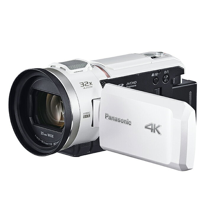種別:ビデオカメラ NOTE高画質・操作性に優れた4Kモデル1/2.5型センサー搭載により高精細な撮影が可能で、手持ち撮影時の手ブレをしっかり抑える手ブレ補正機能の搭載など、充実の基本性能を搭載しています。運動会や発表会などイベントで主役となる子供の自然な表情や動きに寄って、鮮明な撮影ができる高倍率ズーム(4K撮影時:光学24倍/iA32倍)を搭載しています。使いやすさも向上し、スマートフォン操作のようにスムーズな操作が可能な184万ドット(※1)の明るい3.0型タッチパネルを新たに採用しました。さらに、便利なUSB Type-Cに対応しています。外出時、撮影の合間の移動時間などにモバイルバッテリーから充電すること(※2)が可能です。さらに、撮影日時を映像の内に記録ができる「タイムスタンプ機能」、イベントや教育現場などで、外部マイクとミキサーを組み合わせて高音質入力をしたいというご要望にお応えした「ライン入力機能」も搭載し、多彩な用途でお使いいただけます。・1/2.5型センサー搭載により高精細な撮影が可能(4K対応)・離れた被写体もしっかり撮影ができる高倍率ズームを搭載・スムーズに操作ができる184万ドット(※1)の3.0型タッチパネルやUSB Type-Cに新たに対応し使いやすさが向上付属品:レンズフード、バッテリーパック(VW-VBT380)、ACアダプター、HDMIマイクロケーブル、USB接続ケーブル※1:16:9映像表示エリア156万ドット※2:本体電源OFF時にモバイルバッテリーを用いた充電が可能。動作確認済みのモバイルバッテリーの情報はメーカーサポートサイトをご確認ください。※メディアは別売りとなりますので別途お買い求めください。対応メディア:SDメモリーカード■主な特徴遠くの表情でもきれいに撮れる高倍率ズーム光学24倍、iA48倍(2K撮影時)のズーム撮影が可能光学ズーム:カメラ内でレンズを動かし、美しい画質を維持したまま最大24倍の撮影ができるズーム。iAズーム:画質の劣化をおさえつつ、最大48倍の高倍率撮影ができるデジタルズーム。細かい手ブレに強いから、手持ち撮影でも安心5軸ハイブリッド手ブレ補正:レンズとセンサーの両方で5軸方向のブレを補正するハイブリッドシステム。ボールO.I.S.機構:ズーム時でもレンズがなめらかに動き、細かい振動の手ブレをおさえます。4Kで撮影するとパナソニック独自機能「あとから補正」ができる4Kで撮影しておけば、あとから本体での編集が可能。さまざまな映像効果をあとから加えて、思い出をキレイにフルハイビジョンで残せます。4Kなら圧倒的高画質できれいフルハイビジョンの約4倍の高解像度を誇る、4Kの画質が思い出を美しく鮮明に残します。高画質・高精度を支える基本性能高性能センサー・エンジンと明るいレンズ:薄暗い部屋でもしっかり撮れる。高速・高精度AF:自動で素早くピントを合わせるので走り回るわが子も逃さず撮影できる。5つのiAモード人物や風景などカメラが自動認識して最適な設定にする5つのiAモード。見やすい&操作しやすいタッチモニター静電容量式タッチパネルでサクサク操作。さらにマルチアングルモニターなのでハイアングルもローアングルも自由自在。USBタイプC搭載なのでモバイルバッテリーから充電できる屋外での撮影でもモバイルバッテリーで充電できて便利。※(電源オフ時)/動作確認済みのモバイルバッテリーの情報は当社サポートサイトをご確認ください。優れた6つの録音モード録りたい音にあわせて、選べる6つのモードで音声の記録もかんたん。Panasonic Image Appで自動で編集とかんたん保存・シェアアプリと連携すれば名場面だけをピックアップして自動でハイライトシーンだけの映像をつくれる。■主な仕様撮像素子:1/2.5型MOS固体撮像素子動画時有効画素数:4K:829万(16:9)/ 2K:617万(16:9)静止画時有効画素数:829万(16:9)/ 622万(4:3)レンズF値(f:焦点距離):1.8(WIDE)/4.0(TELE)f:35mm判換算:動画:25.0mm~600.0mm(4K30p/24p 16:9/2K24p 16:9)/ 28.9mm~693.7mm(2K60p 16:9/2K30p 16:9)、静止画:25.0mm~600.0mm(16:9)/ 30.6mm~734.4mm(4:3)絞り:自動・手動補正最短撮像距離:レンズ前面より約1.2m(全域)、約10cm(WIDE近接)、iAマクロ時 約5cm(WIDE近傍)、約1.2m(TELE端)フィルター径:62mmレンズカバー:オート(開閉ともに自動)ズーム:iAズーム:iAズーム 4K:32倍、2K:48倍、光学ズーム 、デジタルズーム:70倍/250倍 (Max.値は、2段階設定可能)低速:約28.2秒、高速:約2.9秒(24p時:約4.3秒)モニター:7.6cm(3.0型)静電容量方式タッチパネル搭載 液晶モニター記録メディア:SDメモリーカード(512MB以上)、SDHCメモリーカード、SDXCメモリーカード(512GBまで)内蔵メモリー:無し撮影機能手ブレ補正方式:光学式(ハイブリッド手ブレ補正,手振れロック機能搭載)白バランス調整:自動追尾及びホワイトセット/晴れ/曇り/屋内1/屋内2/蛍光灯 (TTL方式)最低被写体照度:1.5 lx(シーンモード Low Light 1/30時)、ナイトモード(カラー):0.5 lx動画記録方式:AVCHD:AVCHD規格 Ver 2.0準拠 (AVCHD Progressive)、4K MP4/MP4/24p:MPEG-4 AVCファイル規格準拠(.MP4)記録画素数:AVCHD;1080/60p:1920×1080/60p PH/HA/HG/HE:1920×1080/60i、4KMP4:2160:3840×2160/30p MP4;1080/50M、10