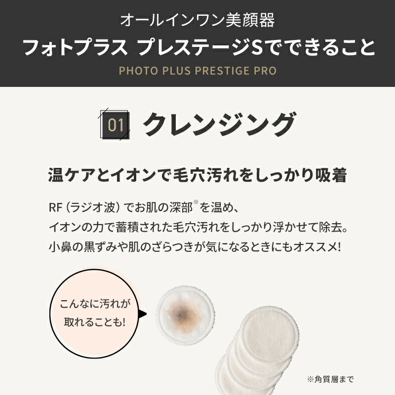 商品紹介ヤーマン「フォトプラス」シリーズの最上位モデルの多機能美顔器です。エステサロンでも採用される3MHzのRF(ラジオ波)と、進化した「NEO DYHP(ネオ ダイナミックハイパーパルス)」を搭載し、美容成分の浸透をサポートします。また、EMSの出力が従来モデルより約30%アップし、表情筋にアプローチします。CLEAN、EYE、NEO DYHP、COOLの4つのモードを搭載。RF、高周波EMS、イオン導出、NEO DYHP、赤・橙・青のLED、マイクロカレント、冷却、振動の10機能を備え、ご自宅で本格的なフェイスケアが可能です。商品名フォトプラス プレステージ プロ M30YLブランドYA-MAN (ヤーマン)メーカーヤーマン株式会社商品仕様型番:M30YLサイズ:約 W50 × D65 × H185 (mm)質量:約230g (コットンストッパーつき)電源:交流式機能:3MHz RF、高周波EMS、イオン導出、NEO DYHP、赤色LED、橙色LED、青色LED、マイクロカレント、冷却、振動付属品:コットンストッパー、ACアダプター、取扱説明書(保証書付き)生産国中国商品区分美容家電ご使用方法4つのモードを搭載しています。1. CLEANモード (約3分): コットンをヘッドにセットし、化粧水を含ませて使用します。RFとイオンの力で、洗顔で落としきれない汚れを吸着します。2. EYEモード: 目もと用の美容液などを塗布し、目もとをやさしくケアします。3. NEO DYHPモード (約5分): 顔全体に美容液やゲルを塗布し、NEO DYHPで美容成分の浸透をサポートしながら、EMSで表情筋をケアします。4. COOLモード (約3分): ケアの最後に冷却機能で肌を引き締めます。その他注意事項※医用電気機器を使用している人(ペースメーカーなど)、心臓疾患、自己免疫疾患のある人、妊娠中の人、温度や刺激の感覚が自覚できない人などは使用しないでください。※美容医療施術後は医師にご相談の上ご使用ください。※詳細は同梱の取扱説明書を必ずご確認ください。広告文責株式会社marble関連ワードYA-MAN ヤーマン フォトプラス プレステージ プロ M30YL M30 M-30 美顔器 RF美顔器 多機能美顔器 最上位モデル ハイエンドモデル ヤマダデンキモデル RF ラジオ波 3MHz EMS 高周波EMS 表情筋 ケア NEO DYHP ネオダイナミックハイパーパルス 浸透 サポート イオン導入 イオン導出 クレンジング 毛穴汚れ 冷却機能 COOLモード 引き締め LED 光美容 赤色LED 橙色LED 青色LED マイクロカレント 目もとケア EYEモード 振動 バイブレーション エステ サロン級 本格ケア ホームケア スキンケア フェイスケア ハリ 弾力 うるおい リフトケア 交流式 付属品 コットンストッパー ACアダプター 日本製 正規品 正規取扱店 ギフト プレゼント 贈り物 誕生日 クリスマス 母の日 敬老の日 M22 M21 比較 YJFD1N