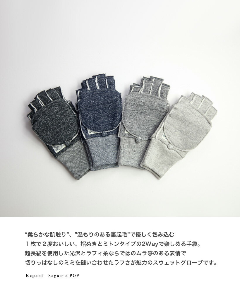 Kepani ケパニ 裏起毛 スウェット スマホ対応 手袋 ミトン 指ぬき グローブ saguaro-pop 日本製 メンズ レディース おしゃれ