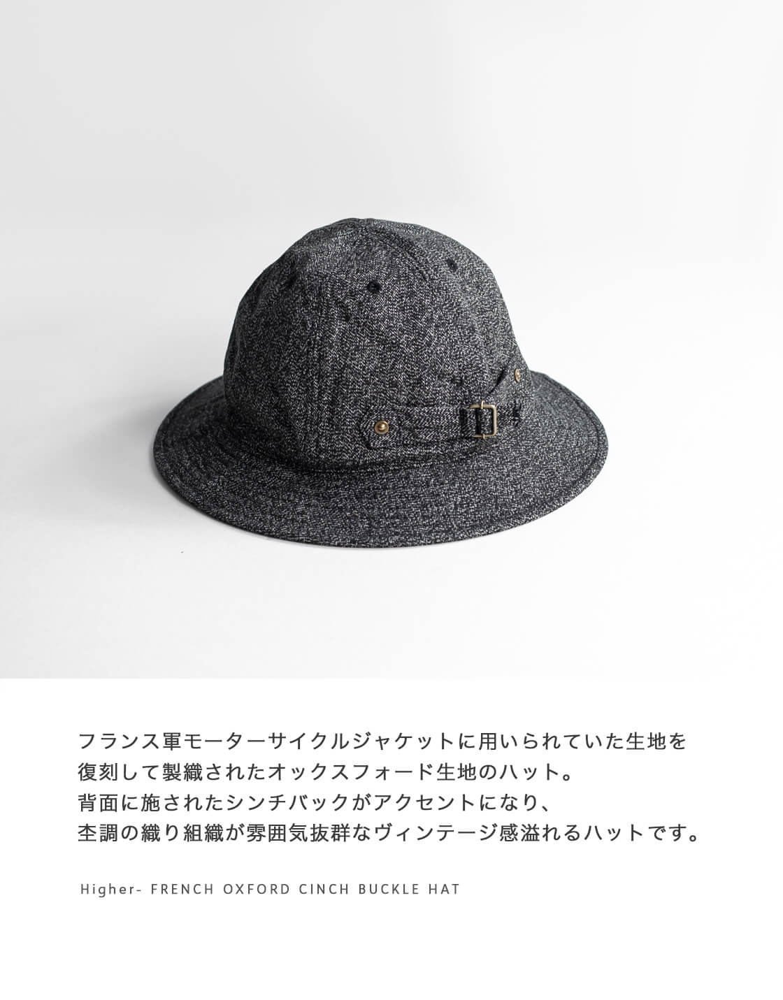 HIGHER ハイヤー フレンチオックスフォード シンチバック ハット 帽子 日本製 メンズ レディース ユニセックス