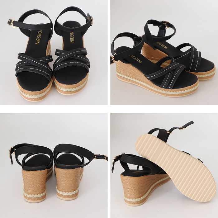 ウェッジソールサンダル 美脚厚底サンダルボリュームソール黒 オルチャン通勤通学 履きやすい靴可愛い