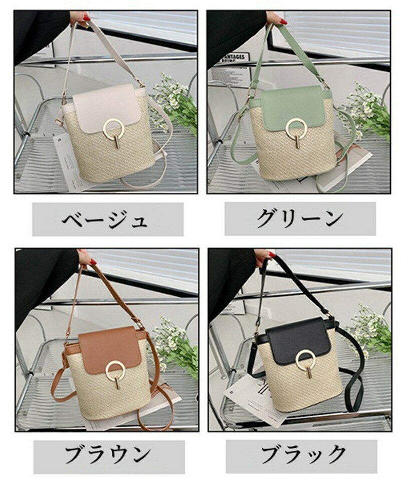草編みバッグ ショルダー レディース ストロー バッグ 夏 ショルダーバッグ 肩掛け 夏バッグ サマーバッグ 編み込みバッグ 草編み カジュアル ナチュラル 軽い シンプル ビーチ 旅行 買い物 お出かけ プレゼント