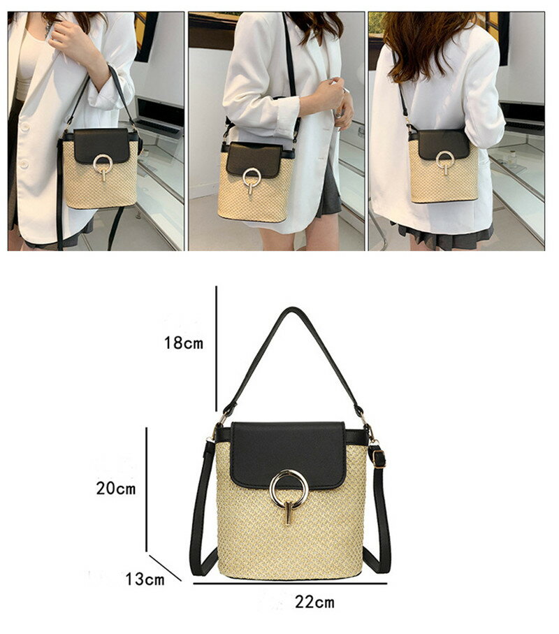 商品詳細 商品内容:草編みバッグ 素材:PU、ストローなど カラー:写真とおり サイズ:約22×20×13cm 生産国:中国 注意書き: ※商品写真は、できる限り現品を再現するように画像処理などの補正を行っておりますが、ご利用のモニターや環境により差異が生じます。予めご了承くださいませ。 ※上記の数値は、実測によるものです。多少の誤差はご容赦ください。 ※仕様は予告なく変更される場合があります。(ご使用に差し支えない程度) ●至急ご利用頂く場合、大量ご購入場合は事前にメールか問い合わせフォームでご連絡お願いします。 ●何かご不明な点、ご要望などございましたら、お気軽に問い合わせください。 ------------------------------------------------- インポート商品について 海外の商品につきましては各国の縫製基準をクリアしておりますが、日本の基準に比べ作りが大まかな部分がございます。 ・縫製の糸の処理やボタンの縫い付けが甘い ・生地や付属品のインク臭・色違いの糸による縫製 ・柄合わせができていない ・製造、加工の際に生じる小さなシミやほつれ ・大まかな作りによる若干の形のゆがみ ・他繊維の混じりによる縫製 ・ベルトなどの穴の若干のゆがみ このような場合での返品・交換はお受けできませんのであらかじめご了承くださいませ。 上記のような点が気になる方は海外製品をおすすめすることができませんので、あらかじめインポート商品をご理解頂きました上でのご購入をお願い致します。夏にぴったり~ ナチュラルな素材の持ち味を生かしたデザイン。軽くて使い勝手も抜群です。 ショルダーストラップの素材は、PUレザーです。しっかりとした底敷きもあり、ファッション感も高めています。 スマートフォンや財布、鍵、口紅などのアイテムも入れることも大丈夫!デニムやワンピースはもちろん、浴衣に合わせてもオシャレ印象UP!お祭りや花火大会、お買い物にお散歩、旅行等におススメです。 【検索用キーワード】 草編みバッグ ショルダーバッグ 軽量 夏 レディース