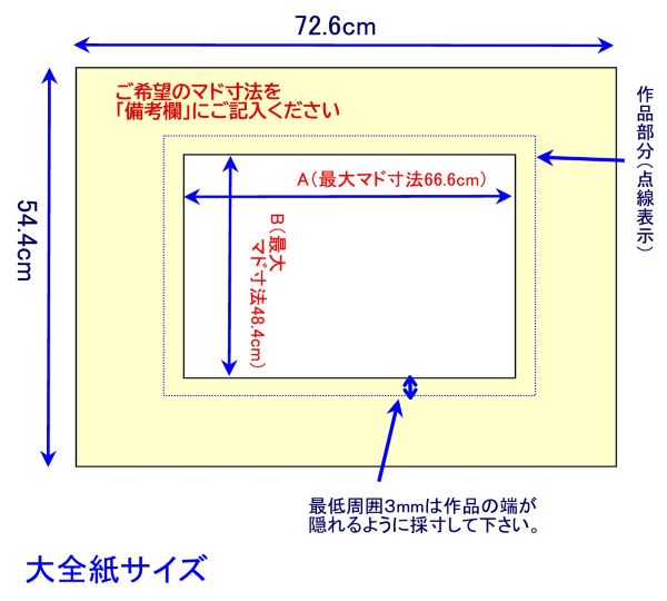 大全紙サイズ(72.6×54.4cm)【額縁用紙マット Vカットマドヌキ】 マットカラーNEW40色から選べる
