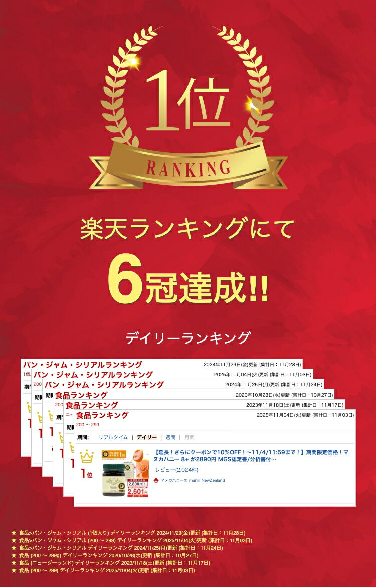 延長!【さらにクーポンで5%OFF!~12/4/11:59まで!】期間限定価格!マヌカハニー 8+ が2890円 MGS認定書/分析書付 250g 1本 MG200以上 モノフローラル 生 はちみつ 非加熱 無添加 マリリニュージーランド 1本から送料無料
