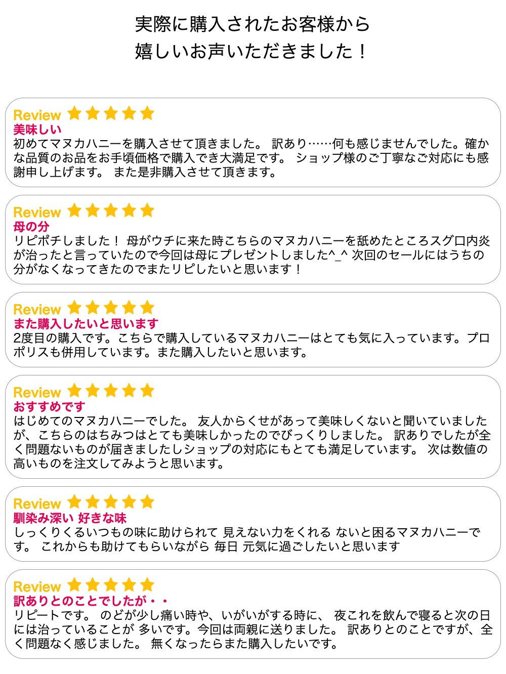 商品名 訳あり マリリニュージーランド マヌカハニー 12+ / MG 400 (500g) 名称 はちみつ 内容量 500gボトル1本 MGS値(MG値) MGS(モラン・ゴールド・スタンダード)12+MG400 特長 世界中の健康施設の最先端で実際に使用されている数値です。健康活性力 に優れ、コストと効果のバランスが良い、日常使いにもっとも適したマヌカハニーとなります。毎日の健康対策にオススメです♪ 分析書 ニュージーランド分析検査所発行の【試験分析書のコピー】を添付してお届けいたします。※複数ご購入の際にも分析書は1枚添付となります。 原材料 マヌカハニー 保存方法 生蜂蜜ですので、お手元に届きましたらすぐに包装をあけていただき、直射日光・高温多湿を避け、冷暗所で保存してください。 賞味期限 商品に記載※マヌカハニーは健康活性力が強い為、ニュージーランドでは賞味期限を設けておりません。 原産地 ニュージーランド 区分 ニュージーランド/健康食品 ご注意ください ※1歳未満の乳児には与えないで下さい。※ラベルデザインなど多少変更になる場合があります。 輸入販売者(広告文責) マリリニュージーランド(株)0133-26-4183北海道石狩郡当別町スウェーデンヒルズ2367-9 関連商品訳あり マヌカハニー 8+ 250g 1本 認定書/分析書付き MGS...訳あり マヌカハニー 12+ 250g 1本 認定書/分析書付き MG...マヌカハニー 16+ 250g 1本 【55%OFF!通常12300円...2,480円3,200円5,535円マヌカハニー 8+ 250g 1本 認定書/分析書付き MGS認証 マ...【48時間限定!】マヌカハニー 8+ 250g 3本 【1本あたり25...マヌカハニー MG700以上 (MGS18+相当) 250g 1本 R...6,400円7,500円6,300円【72時間限定!】マヌカハニー 12+ 250g 3本 【1本あたり3...マヌカハニー 12+ 250g 1本 【54%OFF!通常8600円⇒...【48時間限定!】生 はちみつ 1kg 2本【1本あたり3190円】【...9,780円3,890円6,380円生 はちみつ 1kg 1本 【 マヌカハニー を超える栄養素!】 ハニ...マヌカハニー 12+ 1kg 1本 認定書/分析書付き MGS認証 マ...【48時間限定!】マヌカハニー 8+ 250g 4本 【1本あたり23...6,400円28,800円9,400円