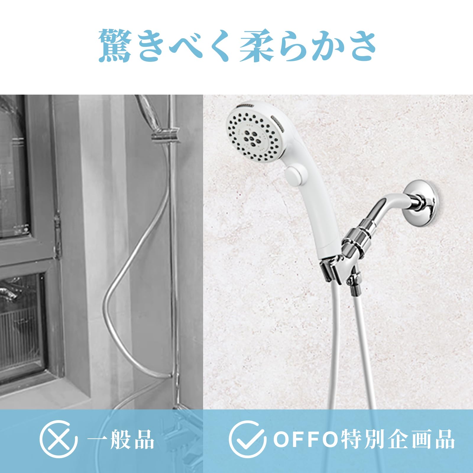 商品情報商品の説明主な仕様 [驚きべく柔らかさ] 本製品はとても柔らかで、変な形がついてません。スムーズに垂れます。使用中にも、最初からまっすぐに伸びられます。[耐久性抜群] シャワーホースの接続部はA級鍛造黄銅で精密加工されており、頑丈で耐久性に優れている。ネジサイズが国際標準G1/2(日本PJ1/2相当)で、接続が簡単です。[安全] 無臭、汚れが付きにくい表面、衛生的に抗菌性があります。 PVC素材を採用し、新しい製造プロセスで多層防爆構造でホースの破裂や漏水などの恐れがありません。[360°自由回転] シャワーヘッドの接続部は360°自由回転できるため、使用中の絡み合いを防ぐことができます。[エレガンス] 多色オプション。シンプルで上品なデザイン、洗練で高級感を演出します。絡み合いがなくて、使いやすいタイプです。[適用するシャワーヘッドメーカー] 本品とシャワーヘッドを接続する側のネジサイズはG1/2です。OFFO、TOTO、LIXIL(INAX)※バランス釜除外、SAN-EI、カクダイのシャワーヘッドに直接取付できます。一部シャワーヘッドはネジサイズは合いますが、ヘッド根元のo-ringが邪魔になって接続できない可能性があります。その場合、シャワーヘッド根元のo-ringを取り外してください。o-ringを取り外した後に、水漏れが発生する場合、付属のパッキンを追加してく見てください。本品はKVKのシャワーヘッド用アダプターが付属しておりますが、KVKシャワーヘッドに取付る場合、アダプターKをお使って接続してください。[適用する混合栓メーカー] 本品と混合栓を接続する側のネジサイズはG1/2です。本品はLIXIL(INAX),SAN-EI,MYMの混合栓にそのまま取付けできます。※LIXIL(INAX)バランス釜、ツーバブルシャワー混合栓、スイッチシャワー混合栓は接続できません。TOTO太ホース、TOTO細ホース、KVK水栓は付属のA,B,Cアダプターを使えば接続できます。[アダプター付き] 付属品A:TOTO水栓(細ホース)と接続用。付属品C:TOTO水栓(太ホース)と接続用。付属品B:KVK水栓と接続用。付属品K:KVKシャワーヘッドと接続用。[2年間の安心保証] ご購入後2年以内に当社利用規約に従って欠陥があった場合、お気軽に当店までご連絡お願い致します。お客様に最高の製品とサービスを提供し、品質保証いたします。 # 【送料無料】OFFO シャワーホース 柔らかい アダプター付 低臭 耐圧 漏れ防止 360°自由回転 ねじれない シャワーほーす 取り付け簡単 長さ1.6m ホワイト 日々の生活で、シャワーの使い勝手に不満を感じることはありませんか?ホースがねじれたり、取り付けが難しかったりすると、快適な入浴時間を妨げてしまいますよね。そんな悩みを持っている方へ、OFFOのシャワーホースをぜひご紹介したいと思います。私たちも同じ経験をしてきたからこそ、その使いやすさと性能の良さを実感できます。この製品は、取り付けが簡単で、低臭の素材で作られており、耐圧性もバッチリ。さらに、360°自由に回転する設計が、シャワー中のホースの絡まりを防ぎます。これにより、毎日のシャワータイムがより快適になるのは間違いありません。シャワーの利便性を向上させるこのホースをぜひお試しください。快適な浴槽ライフを手に入れましょう! ## 驚きの柔らかさと耐久性 OFFOシャワーホースは、その柔らかさが特長です。材質にこだわり、非常にスムーズに垂れ下がるため、使用中もホースがねじれたり、変な形がついたりする心配がありません。この柔らかさは、ホースを扱うストレスを軽減し、快適な使用感を提供します。使用する際にも、最初からまっすぐに伸ばして使える点は非常に便利です。 さらに、シャワーホースの接続部分にはA級鍛造黄銅を使用しており、精密加工されています。これにより耐久性は抜群で、日常的に使用する際の破損や劣化を防ぎます。国際標準G1/2ネジサイズを採用しているため、接続も簡単。ホースの取り付けは煩わしい手続きなしで行えるので、すぐに使用を開始できます。 このホースは、強度だけでなく、使用する時の安全性も考慮されています。無臭で衛生的なPVC素材を使用し、汚れが付きにくい特性があります。また、抗菌性があるため、清潔に保ちながら安心して使えます。子供やペットがいる家庭でも、安全に使用できる嬉しいポイントです。さまざまなニーズに対応したこのシャワーホースは、まさに理想的な商品です。 ## 360°自由回転で快適な操作性 OFFOのシャワーホースの大きな魅力は、360°自由回転が可能な設計です。この特性により、ホースが絡まることなく快適に使うことができ、ストレスのないシャワータイムを実現します。使用中のホースの絡まりを心配する必要がないため、リラックスした気分でシャワーを楽しむことができます。 例えば、乾いた体や髪を洗う際には、手の動きに合わせて自由にホースが動くのが嬉しいポイントです。これにより、水をかける位置を簡単に調整でき、より細やかな洗浄が可能になるのです。大きなシャワー空間でも、ホースの