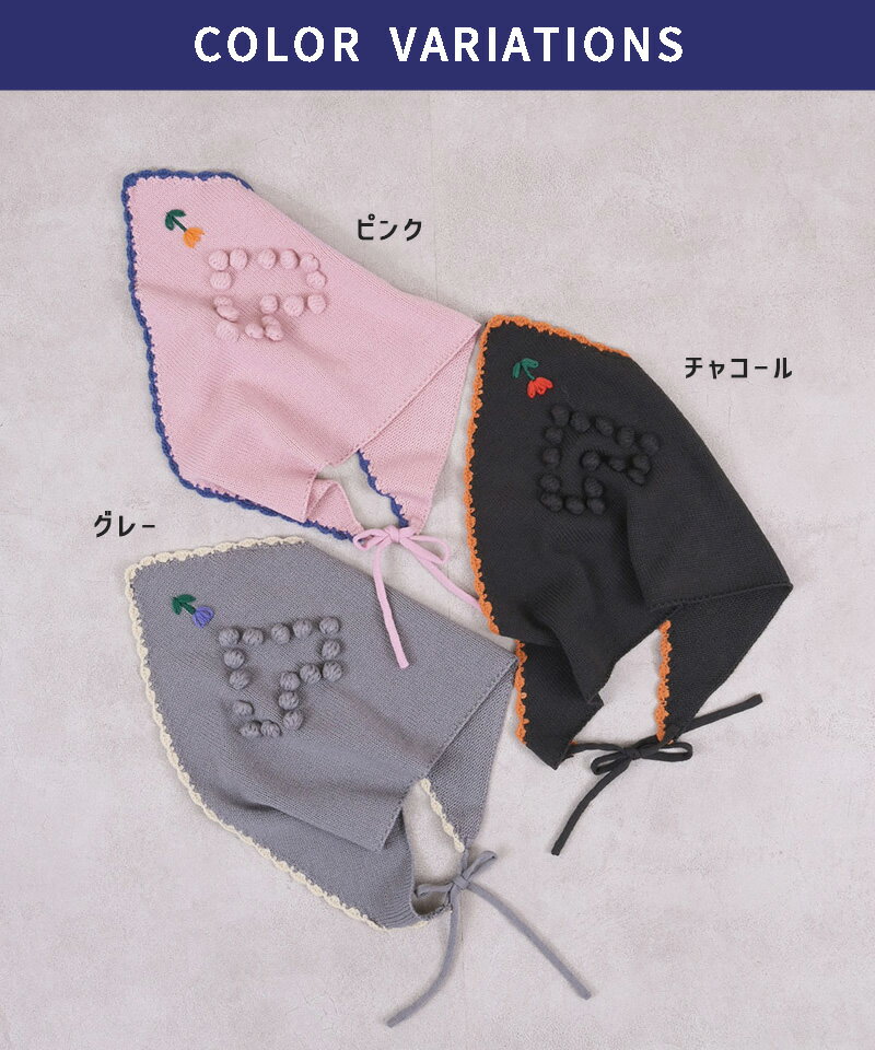 ※一部クーポン対象外※【マシンウォッシャブル】ポンポンフラワーニットバブーシュカ(FREE) 子供服 雑貨 キッズ ベビー 帽子 2025AW