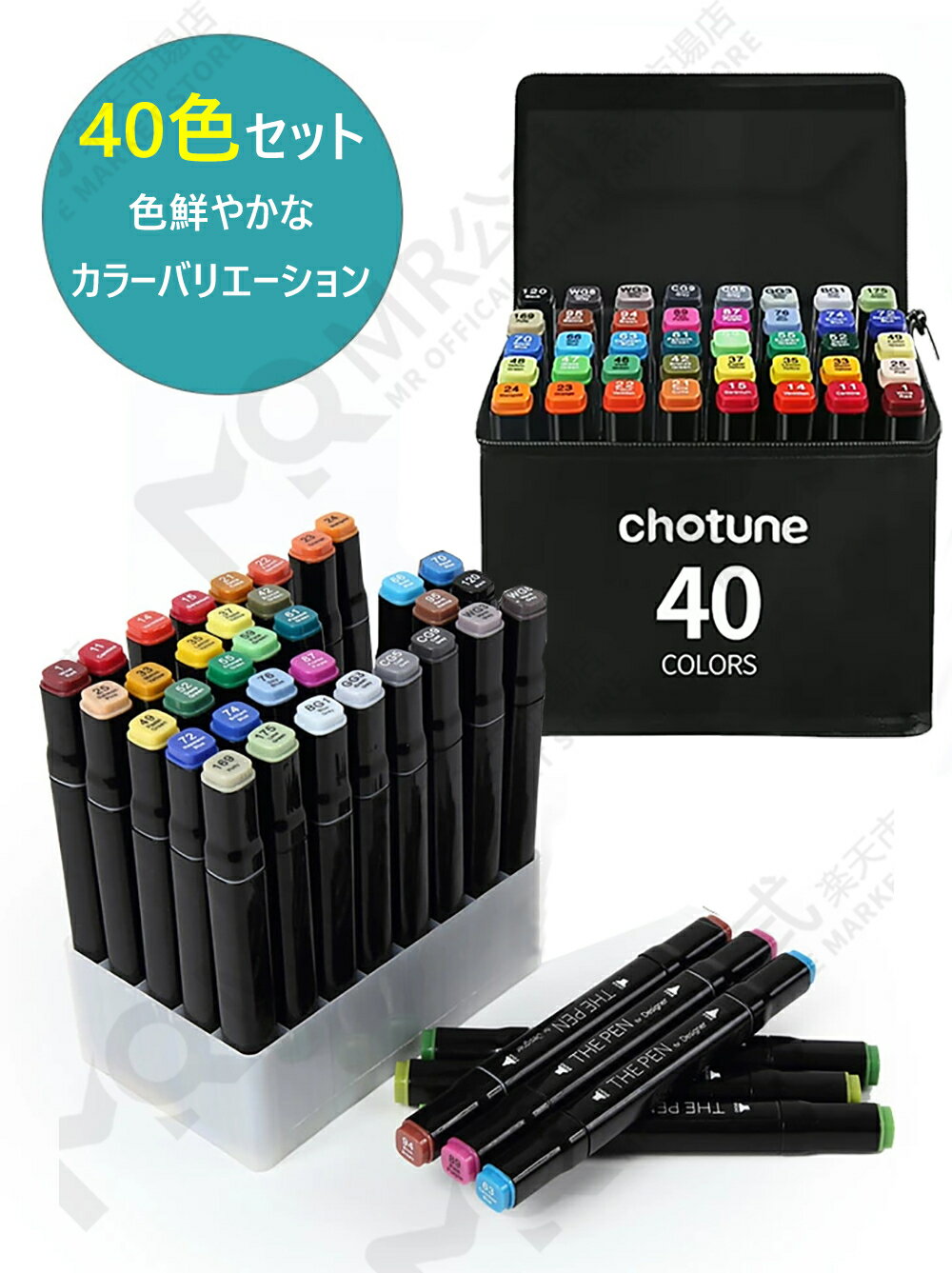 イラストマーカー マーカーペン セット マーカーペン 40色 セット イラストマーカー サインペン カラーペン イラスト ペンセット 収納バック ペンスタンド アルコールマーカー 子供 大人 小学生 初心者 練習 上級者 誕生日 プレゼント 景品