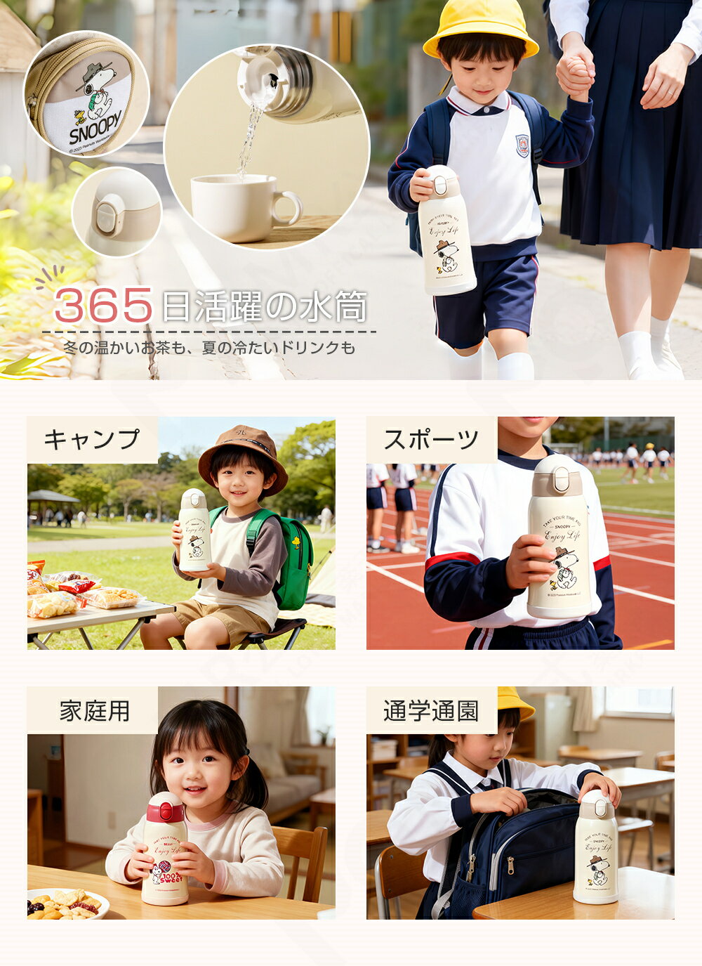 3WAY 水筒 キッズ ストロー 直飲み コップ 保冷保温 子供用 3カラー 大容量 600ml 316ステンレス 水筒ホルダー 軽量 持ち運びやすい スヌーピー snoopy ワンタッチ 真空断熱ボトル 魔法瓶 洗いやすい かわいい 旅行外出 スポーツ 男の子 女の子 通園通学 特典付き クリスマス