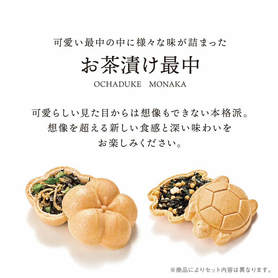 お茶漬け最中セットD可愛らしい見た目からは想像もできない本格派。想像を超える新しい食感と深い味わいを、お楽しみください。●最中(鯛茶漬け)8.3g×1、最中(梅茶漬け)8.1g×1、最中(鮭茶漬け)9.3g×1、最中(たらこ茶漬け)8.1g×1、最中(わさび茶漬け)8.3g×1、最中(ちりめん山椒茶漬け)8.1g×1、最中(ふぐ茶漬け)8.3g×1、最中(ゆずこしょう茶漬け)8.1g×1※もち米 100%(国産)最中種●箱サイズ:170×255×48mm【製造より6ヶ月】【小麦・乳成分】本商品はご注文タイミングやご注文内容によっては、購入履歴からご注文キャンセル、修正を受け付けることができない場合がございます。○●○●○● こんなギフトシーンにオススメ ●○●○●内祝い 出産内祝い 命名紙 命名札 お祝い返し 御祝返し 結婚内祝い 結婚引出物 結婚引き出物 結婚 結婚式 披露宴 ブライダルギフト ウェディングギフト ウェディング 結婚祝い 結婚記念日 金婚式 銀婚式 ダイヤモンド婚式 快気内祝い 快気祝い 快気 慶事 全快祝い 新築内祝い お返し 新築祝い 上棟祝い 引越し祝い 引っ越し祝い 引越し 入園 入学 進学 卒業 卒園 入園内祝い 入学内祝い 進学内祝い 進学祝い 入園祝い 入学祝い 卒業記念品 就職内祝い 就職 就職祝い 退職内祝い 退職 退職祝い 退職記念 定年退職 定年 定年退職記念品 成人内祝い 成人祝い 成人 成人式 返礼 返礼品 満中陰志 香典返し 志 法要 年忌 仏事 法事 法事引き出物 仏事法要 四十九日 49日 偲び草 粗供養 初盆 七七日忌明け志 志 弔事 喪中見舞い 一周忌 三回忌 七回忌 回忌法要 お供え 御供え 葬儀 お祝い 御祝い ギフト 出産祝い 退職祝い 昇進祝い お餞別 お中元 御中元 お歳暮 御歳暮 お年賀 御年賀 お正月 年末年始 帰省 手土産 お土産 初老祝い 還暦祝い 古希祝い 喜寿祝い 傘寿祝い 米寿祝い 卒寿祝い 白寿祝い 長寿祝い お見舞い 御見舞御礼 御礼 ご挨拶 挨拶 ごあいさつ 御挨拶 お誕生日 誕生日 お祝い バースデイ バースデー プレゼント パーティ 母の日 父の日 両親 孫の日 敬老の日 敬老祝い ハロウィン クリスマス バレンタインデー バレンタイン ホワイトデー 忘年会 新年会 賞品 景品 二次会 ゴルフコンペ コンペ ノベルティ 初節句 桃の節句 女の子 ひなまつり 雛祭り 端午の節句 こどもの日 男の子 七五三 七夕 冬休み 春休み 夏休み 粗品 プレゼント 記念品 贈答品 贈り物 ギフト ギフトセット 詰め合わせ のし包装無料 ラッピング無料 手提げ袋無料 あす楽 最強配送 即日 即納 即日出荷 即日納品 お急ぎ便【楽ギフ_のし】 【楽ギフ_のし宛書】 【楽ギフ_包装】 【楽ギフ_包装選択】 【楽ギフ_メッセ】 【楽ギフ_メッセ入力】GiftFieldMARRY Gift Field MARRY ギフトフィールドマリー ギフト フィールド マリーカタログギフト セレクト チョイス 選べる ギフトカタログ 旅行 ラッピング セット 送料無料・送料込みライン・送料無料ライン対応商品多数 のし 熨斗 人気 内祝いとは 評判 ランキング リボン メッセージカード マナー
