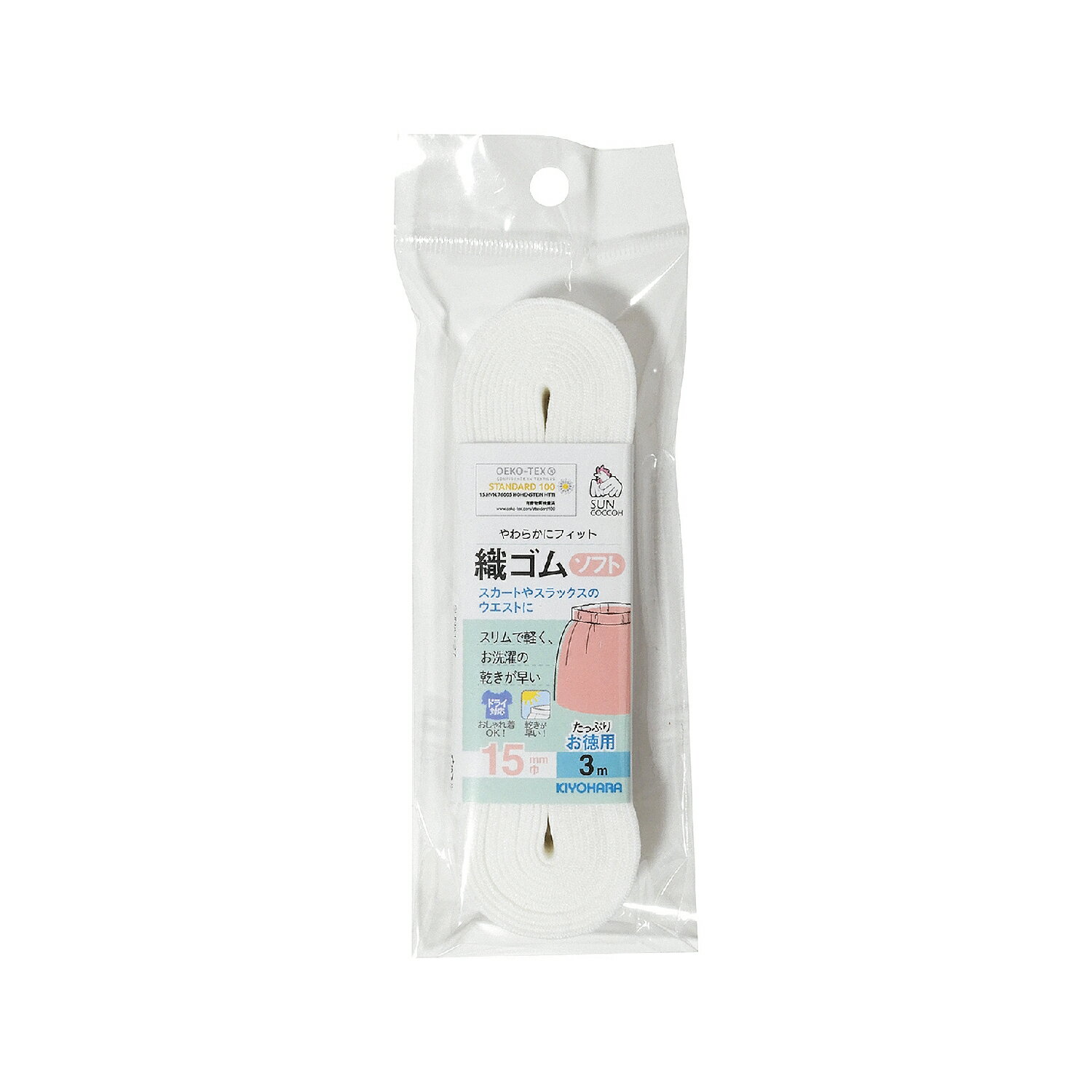 ■織ゴム・ソフト 3m■ 仕上がり感で選べる、ソフトとハード2種類の織ゴム。 ソフトは、やわらかいフィット感。ストレッチインベルとしてご使用いただけます。 スリムで軽く、お洗濯の乾きが早い。 ドライクリーニング対応で、おしゃれ着にも使えます。 エコテックスマーク取得の、安心安全の品質。 ラテックスフリーで、ラテックスアレルギーの方にもご使用いただけます。 お徳用の3mタイプ。 ◆在庫の都合上、メーカー発注が必要な場合があります。その場合、予定より配送にお時間いただく場合がありますのであらかじめご了承ください。 ◆画像やモニターによって実際の色合いと異なる場合があります。 ◆ご注文数量や梱包サイズにより配送方法のご希望に添えない場合があります。 ◆ご購入数により配送料金が割増になる場合があります。その場合別途メールでご確認させていただきます。 ■織ゴム・ソフト 3m■ ◆カラー :白 ◆種類 :40mm巾 ◆Pサイズ:80×170×30 ◆重量 :約73g ◆材質 :ポリエステル88%、ポリウレタン12% ◆メーカー:清原 KIYOHARA ◆こちらの商品ページは1個単位での販売です。 手芸の丸十はお客様の手作りのお時間を少しでも楽しいものにしていただけるよう、お手伝いさせていただきます。手芸用品 服飾用品 生地 毛糸 雑貨 ソーイング レシピ 編み図 パターン 刺しゅう 手作りキット レジン アクセサリー ぬいぐるみ 編みぐるみ 手づくり プレゼント ベビー用品 入園入学 オーガニック素材