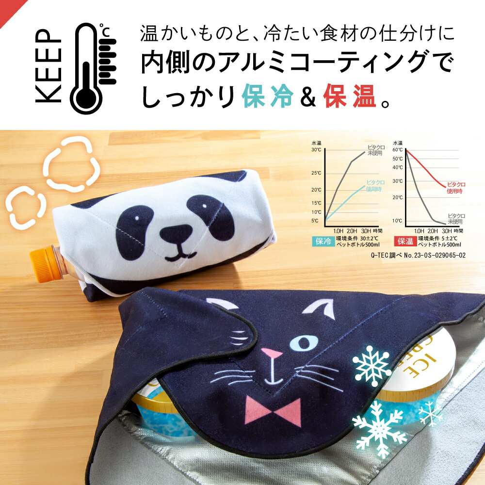 ピタッとくっつく保冷温クロス ピタクロ 保冷 ランチクロス ランチバッグ アルミコーティング お弁当 保冷クロス 保温バッグ 弁当 ペットボトル カバー 黒猫 パンダ アニマル柄 大人 男の子 女の子 クール 買い物 おしゃれ ランチグッズ 猫の日