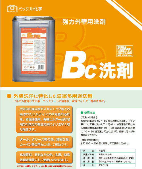 【ミッケル化学株式会社】業務用洗浄剤 BC洗剤 18L 外壁洗浄剤 業務用 業務用洗剤 タール グリース カーボン