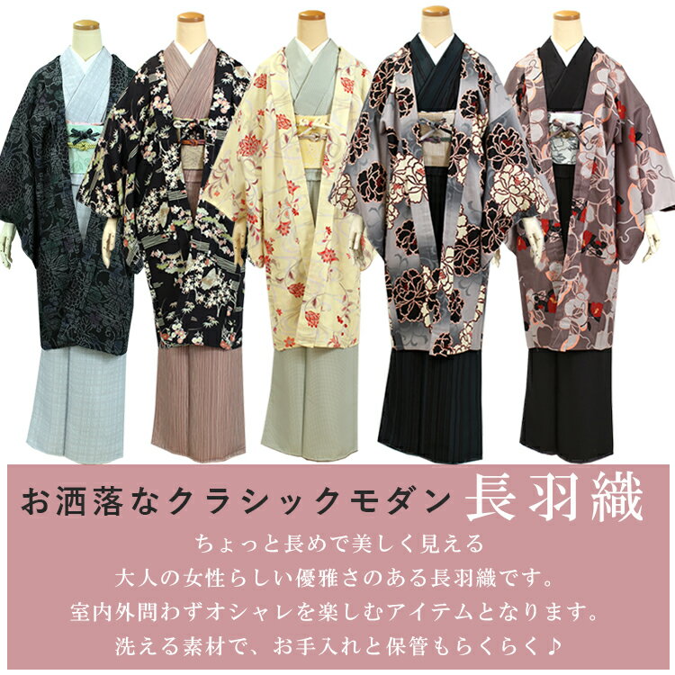 洗える 羽織 仕立て上がり 5種類 フリーサイズ 共布羽織紐付き 鼠色 クリーム色 黒色 花柄 長羽織 はおり 塵よけ 普段着 おしゃれ着 単衣 袷 和装 和服 女性 女物 レディース クラシック レトロ モダン 春 秋 冬 あす楽 送料無料