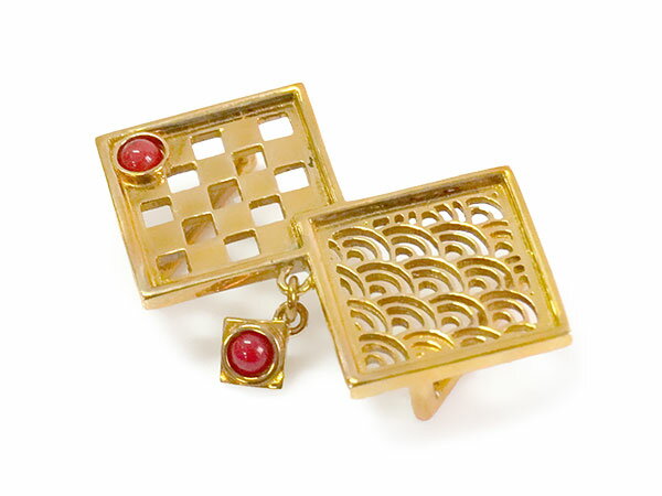 帯留 菱つなぎ ゴールド 赤サンゴ 単品 三分紐を通す 可愛い 帯留め 帯どめ 小紋 洒落着 カジュアル パーティー クリスマス お正月 和装小物 着物 和服 和装 帯飾り 箱入り ギフト アクセサリー