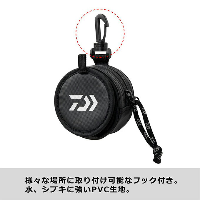 20210926-02リーダーのスプールをぴったり収納可能! 【DAIWA LEADER POUCH(A) 2021年モデル】■品名:リーダーポーチ(A)■本体外寸 (cm):約5x8.5x8.5■素材:PVC ※本体外寸は縦(奥行)×横×高さです。 ■リーダー用スプール専用ポーチ■糸くずを絡めとる糸くずキャッチ機能付き■様々な場所に取り付け可能なフック付き■水、シブキに強いPVC生地■直径7cm、厚さ8mm程度のリーダー用スプール4枚程度収納可能 (DAIWAモアザンリーダースプール想定)