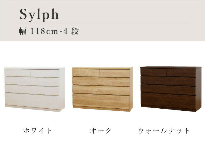 チェスト タンス 幅120 4段 奥行44 ローチェスト 木製 完成品 桐 箪笥 たんす 北欧 白 ホワイト オーク ウォールナット 衣類収納 衣装ケース 着物 桐たんす 整理タンス 引き出し 収納 婚礼 日本製 国産 丸田木工 シルフ