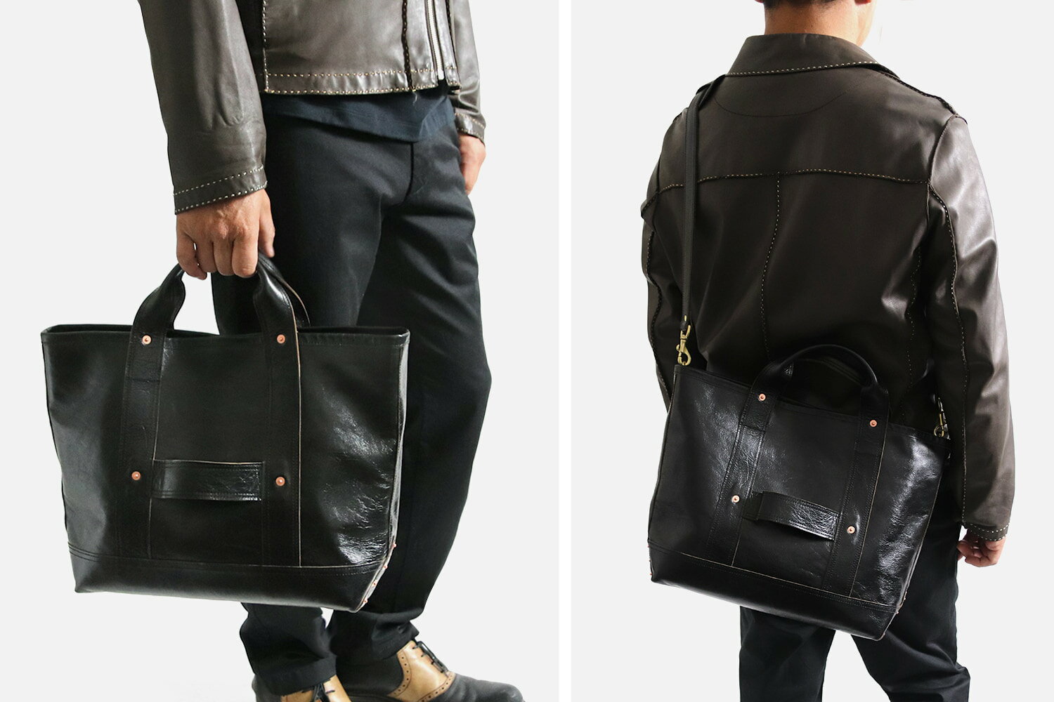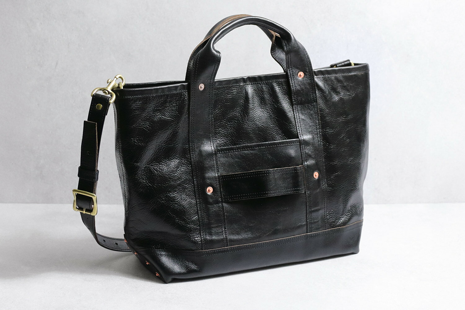 迫力あるオール馬革コレクションHORSE HIDE COAL BAG (MEDIUM) inception インセプション / ホースハイド 日本製A4対応 アメリカの炭鉱夫が使っていたコールバッグを再現 コールバッグとはもともと石炭を2人で運ぶために、両サイドにも持ち手がついたバッグです。 重たい荷物を運ぶため、炭鉱以外でもツールバッグとして利用されている形になります。 現存するビンテージのコールバッグを元にリベットや細部の仕様にこだわって再現いたしました。 素材は定番のホースハイドと同じ下地ですが タイコ入れ(もみ加工)→染色→アイロン(艶出し)→再度タイコ入れ(繊維をほぐす)を行い 通常よりもさらに多くの工程を経て表情豊かなレザーが完成されます。 リベットは試行錯誤の末、ジーンズ用のサイズを採用。アクセントとして効いています。 別売りショルダーストラップで2wayスタイルも可能 ショルダーストラップ購入ページへ 革の風合いを極限まで引き出し、他にない存在感を。 「英国紳士が時を経て大事に持ち続ける革財布のようにこの財布を持ち続けて欲しい。その歴史の発端を提供したい。そんな願いを込めて”INCEPTION〜始まり:発端〜”というブランドを始動しました。」 以来、ハイセンスなユーザーに育てられたINCEPTION。時に、ヨーロッパの上質な馬革の原皮を日本にてオリジナルで鞣し染色した「ホースハイド」を贅沢に使用。時に、パーツから日本国内で製作。最高の素材を世界中に追い求めるブランドへと成長しました。卓越した職人の手から生まれる「本物」をご堪能ください。 ホースハイドコレクションでは、美しい艶の中に見えるナチュラルな表情が、まるで広大な地を駆ける馬の姿を想起させます。巧みなエイジングの仕掛けも何ともカッコよく、楽しい。 壮大な時の流れと息吹が感じられる逸品です。 material HORSE HIDE ホースハイドレザーは、成馬の胴体部分を使った革を指します。 元々、フライトJK等の衣料用途として生地内容や大きさを厳選した下地を使用しています。 最終工程で軽くモミ加工する事により何とも言えない、肌触りとソフト感を出しています。 「茶芯」が生む、なんとも味のあるコントラスト 使い込まれることによって擦れなどで徐々に表面の顔料が剥がれ、中の下地部分が顔を出してきます。下地は芯までモカに染められているため、なんとも渋い表情に。 この状態は「茶芯」と呼ばれ、多くのヴィンテージ愛好家に親しまれています。 HORSE BUTT こだわって細部まで馬革を使っています。ホースバットは、線維密度の高く希少な馬尻部の革。バッグシリーズではベルトのジョイント部分などに配置されています。 こちらではコードバンとして完成出来なかった下地を使用して、牛革には無い馬革独特な肌触りや表面の自然なシワが出る様に仕上げています。 同じくヨーロッパ産原皮で出来るだけ厚いホースバットを選別し、ベジタブルタンニン鞣しを施しています。 染色はあえて染料の染めっぱなしにしており、使うほどに馬ヌメ本来のエイジングが楽しめる革になっています。 この素材には馬革特有の血筋や、走り回ったりした際の多少の傷やシワ、染めムラなどを含む場合がございます。 革の特性上、予めご理解ください。 angle & size detail 頼もしいサイズ感 500mlペットボトルが縦に、書類や、かさばるカメラも収納できました。 ハンドル 頑丈でグリップが良いです。 ポケット スマホやパスケースをさっとしまえます。 細部まで光る機能美 ホースバットレザーにボタンが付いています。裏に指を入れると本体を潰さずにスナップを閉じることができます。 金具は真鍮で統一 革と共にエイジングを楽しめます。こちらのベルトのジョイント部分はホースバットレザーを使用しています。 内素材 堅牢度に優れた8号帆布を使用。 ファスナーポケット レザーのブランドタグが付いています。 大きめのポケット 立体的で収納力のあるポケットが2つ。 仕分けに便利 散らばりがちな小物の定位置に。 サイズ 幅43×高さ29×マチ14(cm)※底面の幅約34(cm) 別売ショルダーベルト 素材 馬革(ホースハイド・ホースバット) 内素材 8号帆布 金具 真鍮 素材特徴 ホースハイドはヨーロッパ産原皮を使用し、ベジタブルタンニン鞣しを施し下地を完成させています。 元々、フライトJK等の衣料用途として生地内容や大きさを厳選した下地を使用しています。 染色の際、表面だけでなく芯までモカ色に染め上げ、最終仕上げで表面を顔料仕上げしています。革全体に安定した色、艶感のある風合いに仕上げていき、最終工程で軽くモミ加工する事により何とも言えない、肌触りとソフト感を出しています。軽さも特徴です。ホースバットは、線維密度の高く希少な馬尻部の革。背面ポケット内のスナップ裏や、ベルトのジョイント部分に配置されています。 重さ 約830g 関連商品