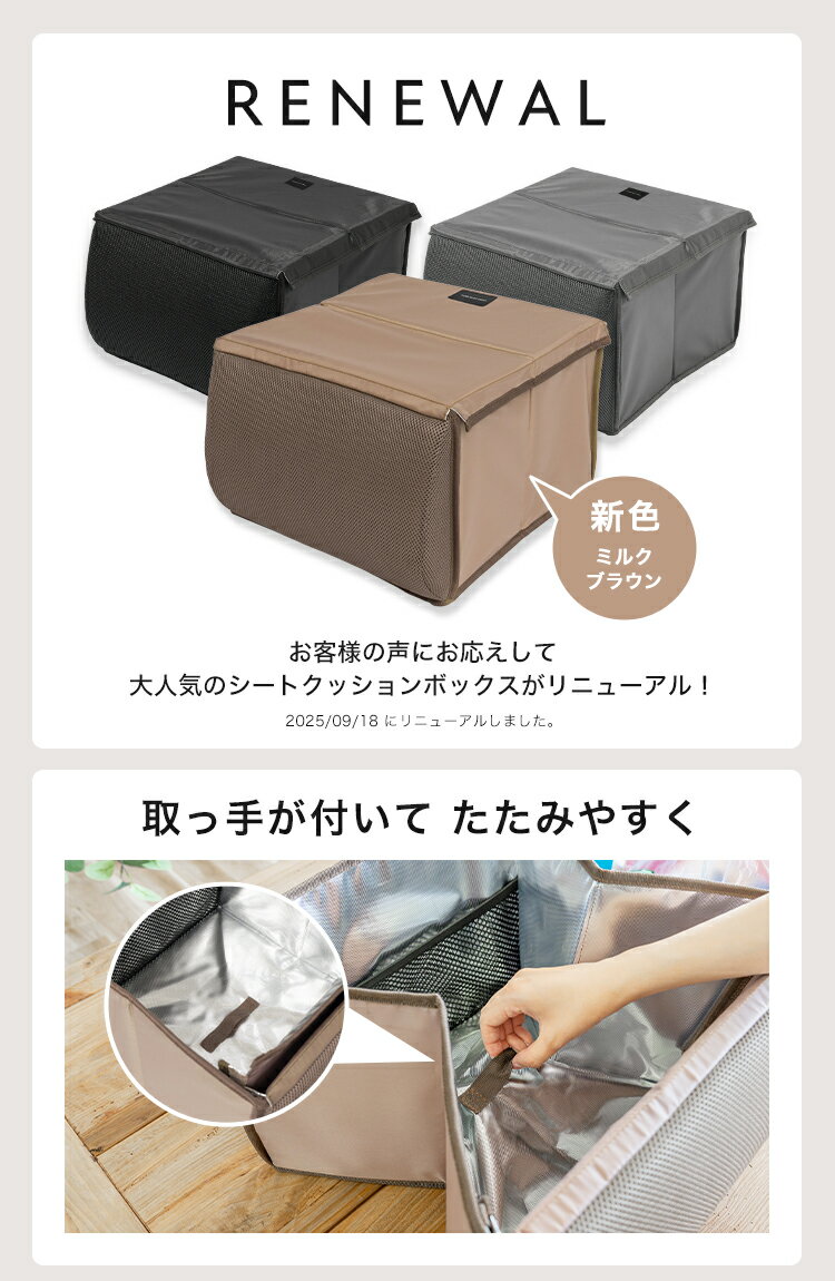メーカー希望小売価格はメーカーカタログに基づいて掲載しています 【 必読 】 ご注文に関する注意事項 >> ■商品名 シートボックス腰クッション ■商品説明 たたむとクッション、広げると収納ボックスになる、一品二役の便利なカーアイテムです。 約35リットルの大容量で、荷物やお買い物袋がたっぷり入る! 座席に固定して、運転中にバッグや買い物袋が倒れるのをしっかり防止します。 荷物を置かない時は折りたたんでクッションとして使えるので、車内に常備していても邪魔になりません。 散らかりがちな車内をスマートに整える便利アイテムです。 ■サイズ ・折りたたみ時 幅約36×奥行き約25.5cm ・展開時 幅約36×奥行き約36×高さ約25.5cm ■カラー ブラック / グレー / ミルクブラウン ■素材 本体生地:ポリエステル クッション:ポリエステル 中板:ポリプロピレン クッション中身:ポリウレタン 保冷シート:ポリエチレン酢酸ビニル ■重量 約640g ■注意事項 ・本来の用途以外には使用しないでください。 ・本製品はシートに完全に固定される構造ではありません。走行中の揺れや急なブレーキ、段差のある道などでは中身が飛び出す恐れがあります。 ・汚れた場合は、布で軽く拭き取ってください。洗濯機、乾燥機のご使用はお避けください。 ・フラットな形状のシートでの使用を推奨しております。座席形状によっては安定して設置できない場合があります。購入前にサイズ・形状をご確認ください。 ・収納物を入れたまま持ち上げないでください。 ・長時間の保冷・保温はおやめください ・製品仕様やパッケージは改良のため予告なく変更される場合があります。 ・サイズや色味は生産時期やロットにより若干の差異が生じることがあります。 ・商品の色は、画面上の画像と実物とでは多少異なる場合があります。あらかじめご了承ください。 ■生産国 china ■関連ワード シートボックス 車 シートボックス クッション 車内 シートボックス カー用品 収納 シートボックス 助手席 後部座席 シートボックス 荷物 落下防止 転落防止 シートボックス 腰 クッション 収納 収納ボックス カゴ 保冷 保冷ボックス 蓋つき フタ付き 保冷剤ポケット 荷物の転落防止 折りたたみ コンパクト 大容量 車 買い物 ドライブ 旅行 トラベル 車用品 助手席 背もたれ 滑り止め 腰のサポート 背もたれクッション シートクッション 荷物入れ ボックス カーシート 車用 折り畳み式 収納ケース 収納BOX 車用収納ボックス 収納バッグ 35? 35リットル カー用品 2way 腰 サポート 取付簡単 便利グッズ 便利アイテム商品名 シートボックス腰クッション 商品説明 たたむとクッション、広げると収納ボックスになる、一品二役の便利なカーアイテムです。 約35リットルの大容量で、荷物やお買い物袋がたっぷり入る! 座席に固定して、運転中にバッグや買い物袋が倒れるのをしっかり防止します。 荷物を置かない時は折りたたんでクッションとして使えるので、車内に常備していても邪魔になりません。 散らかりがちな車内をスマートに整える便利アイテムです。 サイズ(約) ・折りたたみ時 幅約36×奥行き約25.5cm ・展開時 幅約36×奥行き約36×高さ約25.5cm カラー ブラック / グレー / ミルクブラウン 素材 本体生地:ポリエステル クッション:ポリエステル 中板:ポリプロピレン クッション中身:ポリウレタン 保冷シート:ポリエチレン酢酸ビニル 重量(約) 約640g 注意事項 ・本来の用途以外には使用しないでください。 ・本製品はシートに完全に固定される構造ではありません。走行中の揺れや急なブレーキ、段差のある道などでは中身が飛び出す恐れがあります。 ・汚れた場合は、布で軽く拭き取ってください。洗濯機、乾燥機のご使用はお避けください。 ・フラットな形状のシートでの使用を推奨しております。座席形状によっては安定して設置できない場合があります。購入前にサイズ・形状をご確認ください。 ・収納物を入れたまま持ち上げないでください。 ・長時間の保冷・保温はおやめください ・製品仕様やパッケージは改良のため予告なく変更される場合があります。 ・サイズや色味は生産時期やロットにより若干の差異が生じることがあります。 ・商品の色は、画面上の画像と実物とでは多少異なる場合があります。あらかじめご了承ください。 生産国 china 関連ワード シートボックス 車 シートボックス クッション 車内 シートボックス カー用品 収納 シートボックス 助手席 後部座席 シートボックス 荷物 落下防止 転落防止 シートボックス 腰 クッション 収納 収納ボックス カゴ 保冷 保冷ボックス 蓋つき フタ付き 保冷剤ポケット 荷物の転落防止 折りたたみ コンパクト 大容量 車 買い物 ドライブ 旅行 トラベル 車用品 助手席 背もたれ 滑り止め 腰のサポート 背もたれクッション シートクッション 荷物入れ ボックス カーシート 車用 折り畳み式 収納ケース 収納BOX 車用収納ボックス 収納バッグ 35? 35リットル カー用品 2way 腰 サポート 
