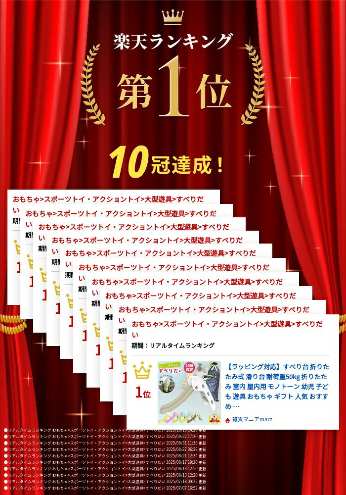 メーカー希望小売価格はメーカーサイトに基づいて掲載しています 関連ワード すべり台 折りたたみ式 滑り台 室内 屋内用 Folding Slide 幼児 子ども 遊具 おもちゃ プレゼント ギフト 人気 おすすめ トランポリン ジャングルジム 知育 玩具 送料無料 おうち時間 耐荷重50kg すべりだい 大型遊具 コンパクト収納 梅雨 おうち時間 夏休み 孫 帰省 プレゼント ギフトアイテム多数ご用意しております 誕生日 父の日ギフト 父の日 プレゼント 母の日ギフト 母の日 プレゼント 実用的 母の日ギフト 花以外 母の日 花以外 敬老の日 記念品 クリスマスプレゼント バレンタインギフト ホワイトデーギフト 内祝 内祝い お祝い返し ウェディングギフト ブライダルギフト 引き出物 引出物 結婚引き出物 結婚引出物 結婚内祝い 出産内祝い 命名内祝い 入園内祝い 入学内祝い 卒園内祝い 卒業内祝い 就職内祝い 新築内祝い 引越し内祝い 快気内祝い 開店内祝い 二次会 披露宴 お祝い 御祝 結婚式 結婚祝い 出産祝い 初節句 七五三 入園祝い 入学祝い 卒園祝い 卒業祝い 成人式 就職祝い 昇進祝い 新築祝い 上棟祝い 引っ越し祝い 引越し祝い 開店祝い 退職祝い 快気祝い 全快祝い 初老祝い 還暦祝い 古稀祝い 喜寿祝い 傘寿祝い 米寿祝い 卒寿祝い 白寿祝い 長寿祝い 金婚式 銀婚式 ダイヤモンド婚式 結婚記念日 ギフト ギフトセット セット 詰め合わせ 贈答品 お返し お礼 御礼 ごあいさつ ご挨拶 御挨拶 プレゼント お見舞い お見舞御礼 お餞別 引越し 引越しご挨拶 記念日 卒業記念品 定年退職記念品 ゴルフコンペ コンペ景品 景品 賞品 粗品 お中元 御中元 お歳暮 御歳暮 お年賀 御年賀 残暑見舞い 年始挨拶 ブラックフライデー 2025すべり台 室内 屋内用 幼児 子ども 遊具 おもちゃ 当店人気のすべり台に新しい色が仲間入り! 新色は当店でしか手に入らない、オリジナルカラーで登場です。 お家で楽しく元気に遊ぼう!折りたたみ式・室内用すべり台。 雨の日や日差しが強い夏や雨天時でも、室内用だからお天気を気にせず遊ぶことが可能! 軽量&コンパクトなのに安心の耐荷重50kgだから、お子様の体重をしっかりと支えられます。 ※同時に2人以上でのご使用はできません。 工具不要!女性の方でも簡単に組み立てができ、使わないときはコンパクトに折り畳んで収納できます。 お子様に安心・安全の角丸デザイン♪可愛い模様の滑り止めエンボス加工もキュート! プレゼントにもおすすめです。 素材 PE サイズ サイズ:110×70×54cm 収納時:100×30×54cm 重量:4.4kg 仕様 折りたたみ式 耐荷重量:50kg 付属品 取扱説明書 カラー ブルー ピンク ホワイト グレー(当店限定カラー) ブラウン(当店限定カラー) ターコイズ(当店限定カラー) JANコード ブルー:4573118563638 ピンク:4573118563645 ホワイト:4573118563621 グレー:4573118565243 ブラウン:4573118565250 ターコイズ:4573118565236 関連商品 ジャングルジム付きすべり台もございます。 品番 slide001 注意 カラーの見え方につきましては、お客様のモニターなどの設定により、違って見える場合がございます。 入荷時期により、商品・パッケージの仕様が変更になる場合がございます。