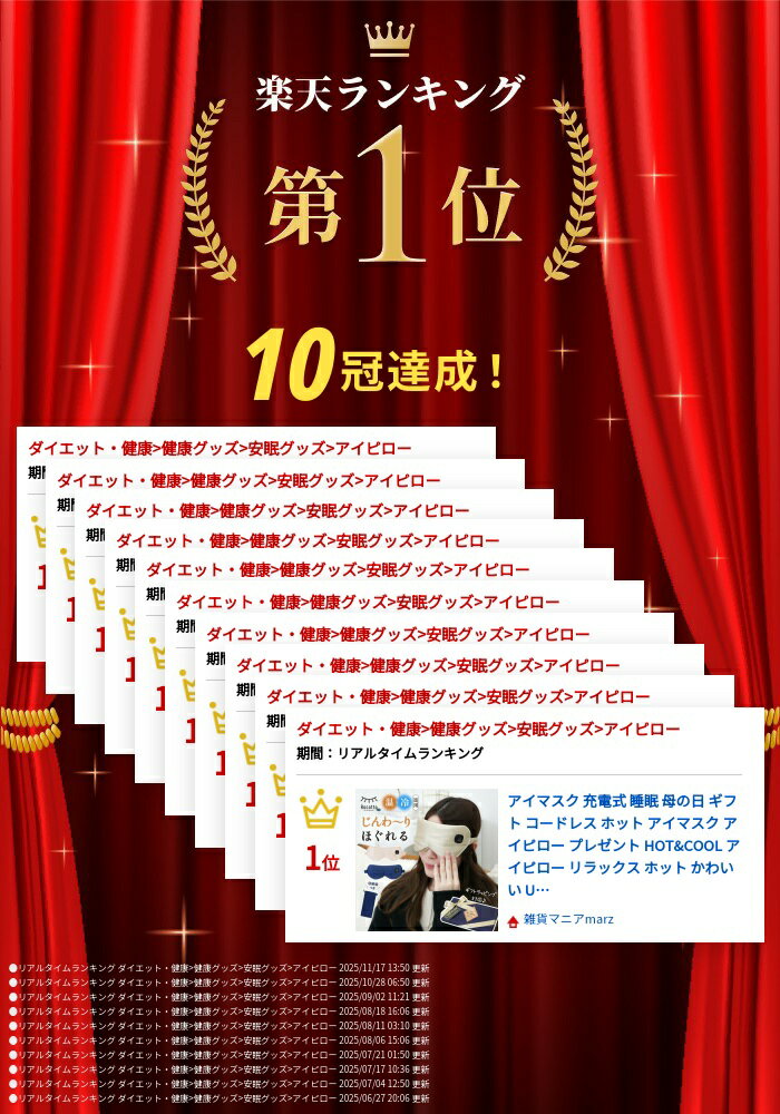 メーカー希望小売価格はメーカーサイトに基づいて掲載しています 関連ワード アイマスク 充電式 コードレス ホット アイマスク アイピロー HOT&COOL アイピロー Rocotto リラックス アイマスク ホットギフト かわいい USB シルク 安眠 睡眠 快眠 グッズ 誕生日 母の日 プレゼント 健康 アイマスク ホット 繰り返し使える アイマスク シルク アイマスク シルク ジュニア シルク アイマスク おやすみ アイマスク おもしろ アイマスク 安眠 アイピロー アイマスク アイマスク 目隠し 安眠 遮光 アイマスク ホット プレゼント ホット アイマスク ギフト ホット アイマスク ホット アイマスク ギフトセット 目の疲れ むくみ アイマスク ギフト アイマスク ホット アイマスク 電気 アイマスク 男性 アイマスク 電動 眼精疲労 アイマスク アイマスク ふわふわ アイマスク 子供 アイマスク 睡眠 温冷 アイマスク ホット アイピロー 安眠 安眠グッズ プレゼント 男性 安眠 セット 快眠 グッズ 快眠グッズ プレゼント ホットアイマスク 充電式 目 クマ ホットアイマスク 目の疲れ グッズ 目の疲れ取り 目の疲れ グッズ 男性 目の疲れ ホットアイマスク アイマスク ホット クール usb アイマスク シルク ギフトアイテム多数ご用意しております 誕生日 父の日ギフト 父の日 プレゼント 母の日ギフト 母の日 プレゼント 実用的 母の日ギフト 花以外 母の日 花以外 敬老の日 記念品 クリスマスプレゼント バレンタインギフト ホワイトデーギフト 内祝 内祝い お祝い返し ウェディングギフト ブライダルギフト 引き出物 引出物 結婚引き出物 結婚引出物 結婚内祝い 出産内祝い 命名内祝い 入園内祝い 入学内祝い 卒園内祝い 卒業内祝い 就職内祝い 新築内祝い 引越し内祝い 快気内祝い 開店内祝い 二次会 披露宴 お祝い 御祝 結婚式 結婚祝い 出産祝い 初節句 七五三 入園祝い 入学祝い 卒園祝い 卒業祝い 成人式 就職祝い 昇進祝い 新築祝い 上棟祝い 引っ越し祝い 引越し祝い 開店祝い 退職祝い 快気祝い 全快祝い 初老祝い 還暦祝い 古稀祝い 喜寿祝い 傘寿祝い 米寿祝い 卒寿祝い 白寿祝い 長寿祝い 金婚式 銀婚式 ダイヤモンド婚式 結婚記念日 ギフト ギフトセット セット 詰め合わせ 贈答品 お返し お礼 御礼 ごあいさつ ご挨拶 御挨拶 プレゼント お見舞い お見舞御礼 お餞別 引越し 引越しご挨拶 記念日 卒業記念品 定年退職記念品 ゴルフコンペ コンペ景品 景品 賞品 粗品 お中元 御中元 お歳暮 御歳暮 お年賀 御年賀 残暑見舞い 年始挨拶 ブラックフライデー 2025コードレス HOT&cool アイピロー Rocotto Rocottoのアイマスクは、アイピローとして疲れた目を労わる効果と、アイマスクとしての遮光性を高め、最適な快眠環境作りができる効果があります。 温めて使用することで【リラックス】、冷やして使用することで【リフレッシュ】することができます。 コードレスの使用もできるので、どこでも使用していただけます♪(コードをつけたままでの使用もできます!) 持ち運びに便利な収納袋もついているので、お家タイムだけでなくオフィスや移動中などの使用もおすすめです! ■温め機能について 便利な充電式です。 電源を入れてから急速で温まり、満充電での使用時間:約1〜2時間の使用が可能です。 30分でオートオフしてくれるのも安心・安全設計になっています! ※30分以上のご使用は、低温やけどになる恐れがございますのでお控えください。 ■冷やし機能について 専用の冷却パッドを冷蔵庫にて冷やしておいてください。 カバーから温パッドを取り出し、冷却パッドを入れることで使用できます。 ■高級シルクを100%使用 摩擦による肌や髪へのダメージを大幅に減らし、やわらかい着け心地を実現。 寝転んでも違和感や痛みがないよう、あえてアジャスターはつけておりません。圧迫感が少ない、快適な着け心地にこだわりました。 アイマスクカバー、収納ケースは洗濯OK ※洗濯時は、必ずヒーターシートを取り出してください。シルク100%のため、手洗いでデリケート素材専用の洗濯洗剤をご使用ください。また、洗濯時により多少の縮みが生じる場合があります。 ■受験生に・母の日・父の日・バレンタイン・ホワイトデー・誕生日・敬老の日におすすめ! 高級感のあるBOXに入っており、老若男女誰にでもお渡ししていただけるシンプルなデザインです。 日頃頑張っている自分へのご褒美にも最適です。 素材 材質:シルク100% (収納袋:ポリエステル) サイズ 本体:24×10×2cm、重量:70g 収納袋:28×12.5 仕様 バッテリー容量:1000mAh リチウム電池 満電使用時間約:1〜2時間 電圧:3.7V 電流:3A 定時機能:あり 加熱パターン:2 充電中→レッドが点滅します。 充電完了→ブルーが点滅します。 商品内容 収納袋付きアイピロー カラー ネイビー シャンパン ピンクベージュ ※収納袋のカラーはすべてネイビーになります。 JANコード ネイビー:4582605307778 シャンパン:4582605307785 ピンクベージュ:4582605307792 品番 eyepillow001 注意 ●使用環境によって体感温度は異なります。熱いと