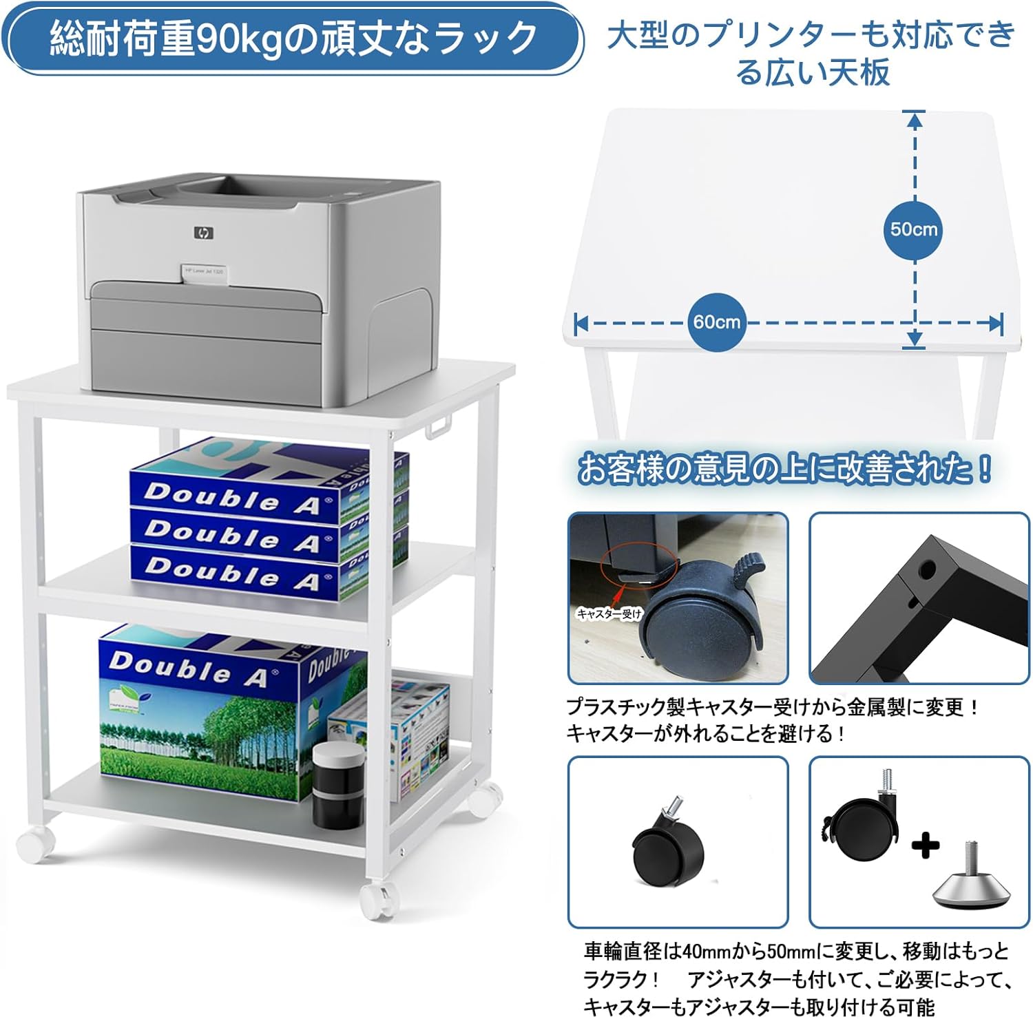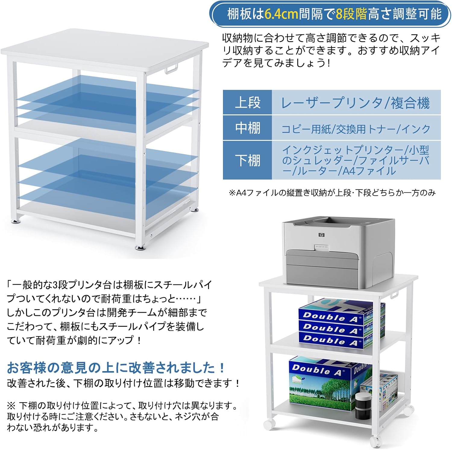 【20日限定★26%券!】★木製・中棚調整・組立簡単★DEWEL プリンター台 キャスター付き 頑丈安定 a3 プリンターラック デスクサイドラック プリンターワゴン おしゃれ コピー機 複合機 机下 収納 サイドワゴン ラック 棚 大型 プリンターカート プリンタースタンド
