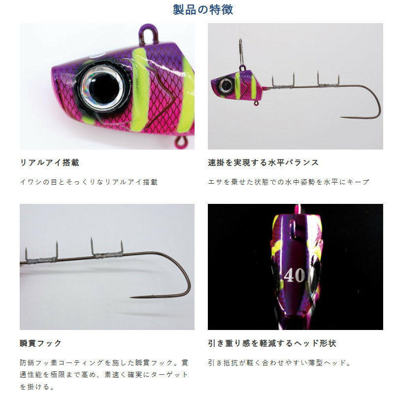 ●掲載商品は複数サイトおよび実店舗で併売しています。ご注文タイミングにより欠品し、お取り寄せにお時間を頂く場合やお手配が出来ずにやむを得ずキャンセルさせて頂く場合がございます。●商品画像は代表画像です。仕様変更により商品スペックやパッケージなど変更となる場合がございます。仕様変更に伴う返品、商品交換の際の往復送料はお客様ご負担となります。●店舗都合・お客様都合に依らずご注文内容の修正やキャンセルを行った際に在庫なしとなる場合やポイント、クーポンなど各種キャンペーンが適用外となる場合がございます。大変恐縮ながらこのような場合でも補填などは出来かねますのでご了承下さい。【ハヤブサ/HAYABUSA】一刀両断シリーズ。水平姿勢×薄型ヘッド×瞬貫フックで実現する驚異の速掛にリアルアイを搭載!進化した速掛型カラー:6.ブルーグローサイズ:60号入数:1個釣り方、フィールド:船釣り(浅場)代表対象魚:タチウオ(太刀魚) MST-12-26-05 SW417