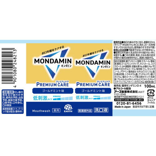アース モンダミン プレミアムケア ゴールドミント 100mL 医薬部外品アース製薬 薬用 MONDAMIN マウスウォッシュ オーラルケア 口腔 ケア