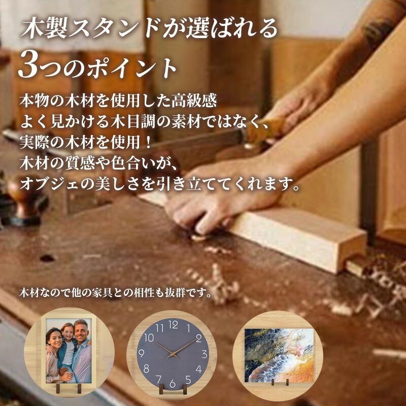 木製スタンドが選ばれる3つのポイント 本物の木材を使用した高級感よく見かける木目調の素材ではなく、実際の木材を使用!木材の質感や色合いが、オブジェの美しさを引き立ててくれます 滑らない木製スタンド、安定性も抜群凹凸感のある木材を使用しているので、滑りづらく、床との接地面積も広く安定します。 はめ込むだけの簡単組み立て、分解も工具不要各部品に窪みがあるから、部品をはめ込むだけで設置完了。さらに、使わないときは分解して付属のポーチに入れてコンパクトに収納。