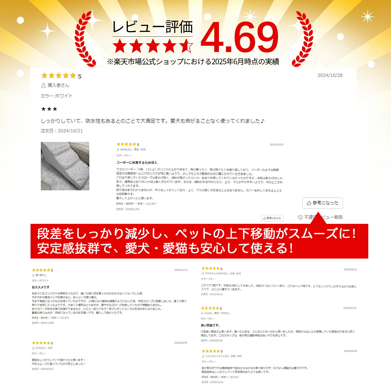 商品情報 商品詳細 ●ブランド:Masthome 詳しくは画像にてご確認ください。 ● 商品名:犬 階段 ● パッケージ内容:ドッグスポンジステップ *1 ● サイズ:85*40*40cm ● パッドの材質:スポンジ、コットンフランネル 商品紹介 【小型犬・老犬介護】 体の小さい小型犬、足腰が悪くジャンプできない老犬、こちらのステップを使えば高所に登れます。ソファーやベット、机にも使えますので、よりご主人様に近づけます。こちらのステップは23kg以下対応できますので、ほとんどの小型犬が使えます。 【ヘルニア防止】 こちらのペット用ステップの中身は高品質のスポンジを使っていて、クッション性もリバンド性もよく、衝撃を減らせる上に凹むことはありません。ペットステップを使えば、ペットがソファーやベットから飛び降りる衝撃を軽減することができ、足腰の負担を減らし、ヘルニアの防止になれます。 【角丸設計】 ステップの幅が広く、上がりも下りもしやすいです。角丸のデザインで、ペットの脚を引っ掛かりにくいです。ステップ全体が緩めなスロープなので、下りる時にちゃんと下のステップが見えて、踏み外しの心配がありません。 【安定性が優れる】 ステップの底に滑り止めが付いていて、ステップが飛び乗ってもずれないので安全です。カバーはコーデュロイの材質で、柔らかくて滑りにくい、爪も引っ掛かないので、ペットがステップで滑ったり転んだりはしません。より安心に使えます。カバー取り外し可能で、洗濯機で洗えるのでとても便利です。 【取り付け簡単】 こちらのステップは真空圧縮包装を使っています。開封後、スポンジが完全の大きさに膨らむには時間がかかります。24~48時間経つと完全に膨らみます。 注意事項 弊社での取り扱い商品は、梱包・発送業務を他倉庫(amazon倉庫や梱包委託倉庫など)に委託して発送しております。 そのため委託先の倉庫によっては無地のダンボールやamazonのパッケージのようなものでお届けけとなる場合がありますので、お受け取り間違いのないようにご留意ください。 当店でご購入された商品は、原則として、「個人輸入」としての取り扱いになり、中国の浙江省の寧波市からお客様のもとへ直送されます。 一部商品は国内の提携先倉庫から配送されます。 商品お届けまでに、海外からの配送は1~2週間程度、国内配送の場合は4~7日程度かかります。 個人輸入される商品は、すべてご注文者自身の「個人使用・個人消費」が前提となりますので、ご注文された商品を第三者へ譲渡・転売することは法律で禁止されております。 関税・消費税が課税される場合があります。 詳細はこちらご確認下さい。(https://ichiba.faq.rakuten.net/detail/000006637) 国内配送の商品は国内でのお買い物と同じく消費税が発生いたします。関税はかかりません。 *色がある場合、モニターの発色の具合によって実際のものと色が異なる場合があります。関連ワード: Masthome 犬 階段 犬スロープ階段 ドッグステップ 犬用ステップ 3段 段差解消 ペット用 ステップ 階段 滑り止め 犬用 犬 ステップ 三段踏み台 23kg以下対応 安全 カバー取り外し可能 ペット用品 小型犬 室内犬 高齢犬 介護用 チワワ ダックスフンド 柴犬 ヨークシャーテリア マルチーズ シーズー ミニチュアシュナウザー パグ キャバリア 猫 ネコ ねこ 子犬 子猫 老犬 老猫 衝撃緩和 シニア犬 高齢犬 ペット用品 怪我 ケガ 負担 軽減 昇降台 関連商品はこちら犬 階段 犬スロープ階段 ドッグステップ...ペット用 ステップ 三段踏み台 四段踏み...犬 階段 犬スロープ階段 ドッグステップ...ペットハウス ドーム型 犬 猫ハウス ...猫 爪とぎポール 縦置き ヤシの木デザイ...