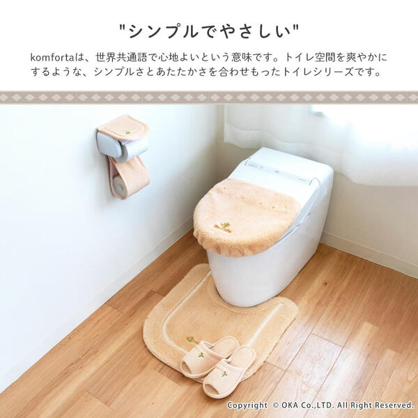 トイレ空間を爽やかにするような、シンプルさとあたたかさを合わせもったコムフォルタシリーズ第6弾の「コムフォルタ6」。 komfortaは、世界共通語で心地よいという意味です。ワンポイントのロゴマーク付きで可愛らしさも感じる仕上がりになっています。お手入れ時にはサッと取外し、簡単に取り付けることができます。 やさしさの象徴ともいえるピンク、くっきりとした明るいベージュ、少し赤みがかったブルーであたたかみと清潔感のあるカラーバリエーションになっています。 手で触れるものだからこそ汚れが気になりますが、洗濯ネットに入れて丸洗い可能なのでいつでも衛生的にお使いいただけます。 カラー ピンク、ブルー、ベージュ 素材 綿75%、ポリエステル25% (成型部品 ポリプロピレン) 備考 中国製(オカ株式会社・中国工場で管理、製造されたものです。) お取扱いとお洗濯について ●漂白剤は、ご使用にならないでください。 ●お洗濯はぬるま湯(30℃以下)で行ってください。 ●家庭用洗剤をご使用ください。 ●ねじり絞りは避け、形を整えて干してください。 ●洗濯機での丸洗いは洗濯ネットをご使用ください。 ★他の物に色移りする場合がありますので別にしてください。 ●パイル(糸)を引っぱったり、引っかけたりしないでください。(パイル(糸)がほどけた場合は、ハサミでカットしてください。) ●アイロンがけの際は、ホックにアイロンが当たらないようにしてください。 ご用途など トイレットペーパーホルダーカバー ペーパーホルダーカバー 衛生的 洗える 洗濯 トイレ用品 風水 ワンポイント ロゴ 植物 モダン カジュアル 刺繍 ピンク ブルー ベージュ ナチュラル おしゃれ おすすめ かわいい インテリア 父の日 母の日 敬老の日 プレゼント お祝い 御祝 新生活 新築祝い 引越し祝い 新築 引っ越し 還暦 古稀 喜寿 傘寿 米寿 卒寿 白寿 長寿 雑貨 マット&ラグファクトリー オカ株式会社 公式オンラインショップ