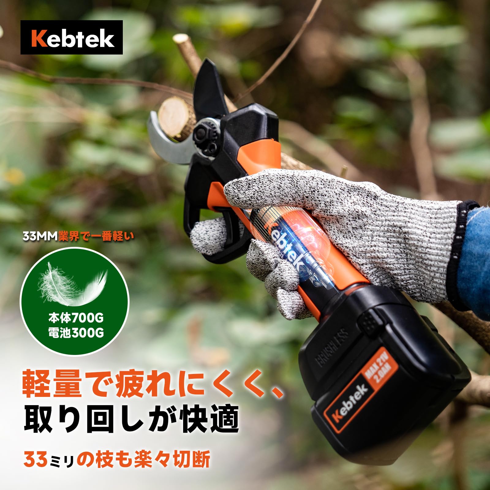 【トリガ連動機能・軽快1.0KG】Kebtek 充電式剪定バサミ 切断径33mm コードレス 21V 電動剪定ばさみ 日本製フッ素刃 電動はさみ 剪定 2000mAh大容量電池1個付属 庭木の剪定 日本語取扱説明書付き (品番KT 933、延長ポールは別売