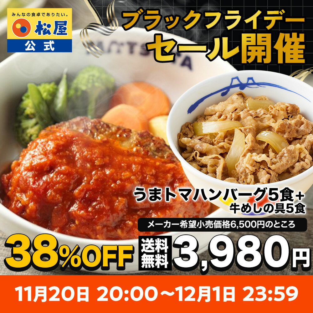 S【1食267円~!衝撃の最大60%OFF!】【楽天総合1位!】うまトマハンバーグ 松屋 公式 うまトマ ハンバーグ トマト にんにく トマトソース オリジナルソース 簡単調理 牛肉 肉 食事 おつまみ 非常食 セール 半額 ブラックフライデー お買い得 お買い得品