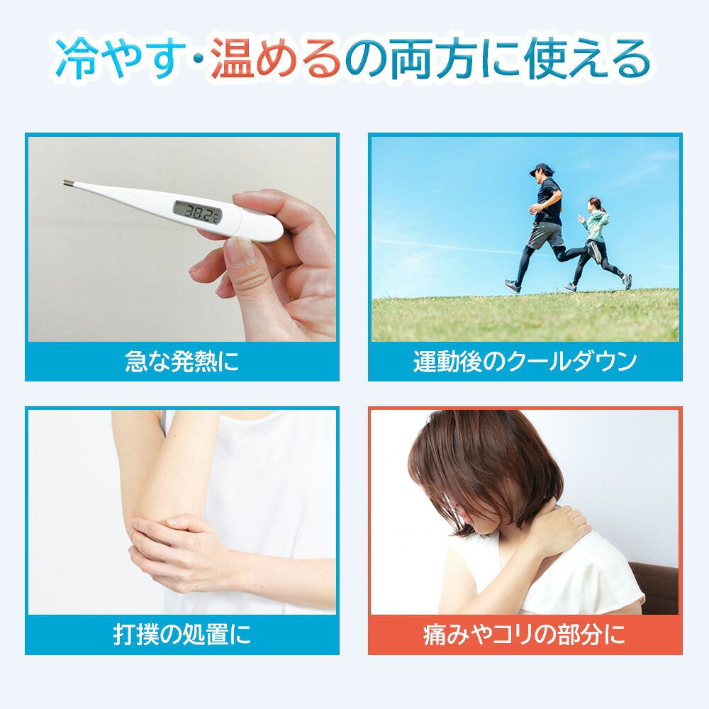 商品情報ポイント●「冷やす」「温める」の両方に繰り返し使用できます。●マイナス15度まで柔軟性を保つので、体の各部位にぴったりフィットします。●急な発熱や打撲、運動後のクールダウンや、痛みやコリ部分を温めたいときに。●耐久性のあるプラスチックとユニークなゲル構成パックで、繰り返しお使いいただけます。エコで経済的です。●冷やす時は冷蔵庫か冷凍庫で。温める時は湯せんや電子レンジをご利用ください。※温める時はパックに記載の注意事項を事前にご確認ください。○関連製品のご案内○−コールドホットパック 1570BT(2コ)ベルトケース1コ ー便利なベルトケース付き。コールドホットパックを差し込むだけで、手足首や脇の下、頭部など当てづらい箇所にも楽に固定できます。詳細●品番:1570BK(5コ)●カラー:ブルー●製品サイズ:100×250mm●材質:パック : ナイロン、ポリエチレン ジェル: 水、カルボキシメチルセルロースナトリウム、不凍液、防腐剤●個装入数:5個JANコード4987580096974