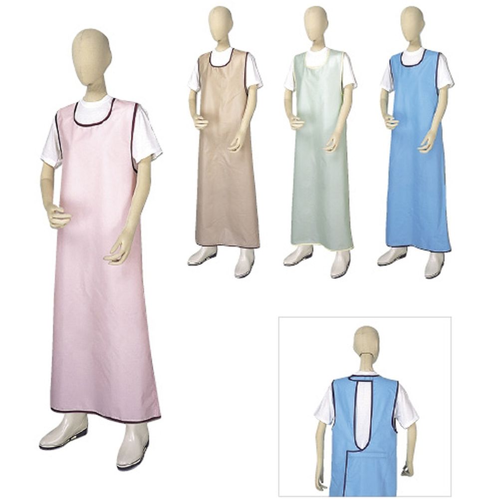 ●着丈の長いロングタイプ●面ファスナータイプですので、巻きヒモがなくてもしっかりフィットします●耐熱・防水加工。●規格:M ,カラー:ピンク ,詳細サイズ:《幅×着丈》117×118cm ,材質:表地=ポリウレタン100%(ラミネート加工)、裏地=ポリエステル100%松吉医科器械|総合カタログ|医療・介護・ドクター・ナース