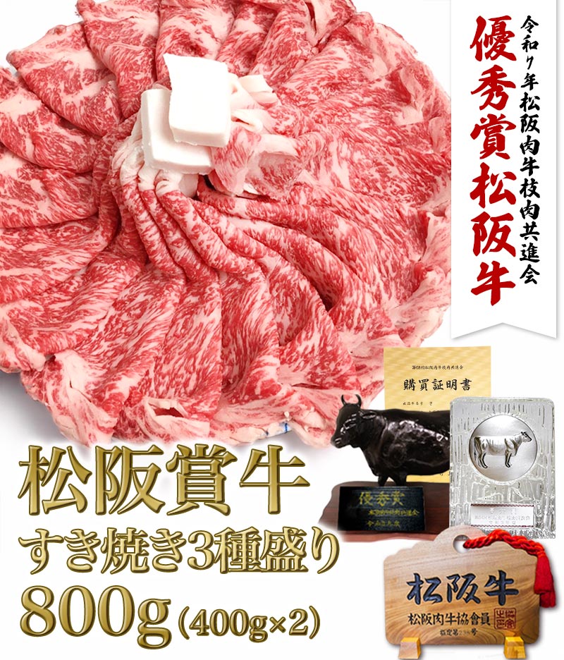 【優秀賞】松阪牛 すき焼き肉 3種 盛り合わせ 800g (400g×2個) すき焼き セット 詰め合わせ 鍋 肉 牛肉 内祝い お歳暮 ギフト 2025 2026 御歳暮 年末年始 ご馳走 クリスマス 食べ物 三重 松坂牛 通販 内祝 お取り寄せグルメ 贈り物 プレゼント 高級 和牛 黒毛和牛 お祝い